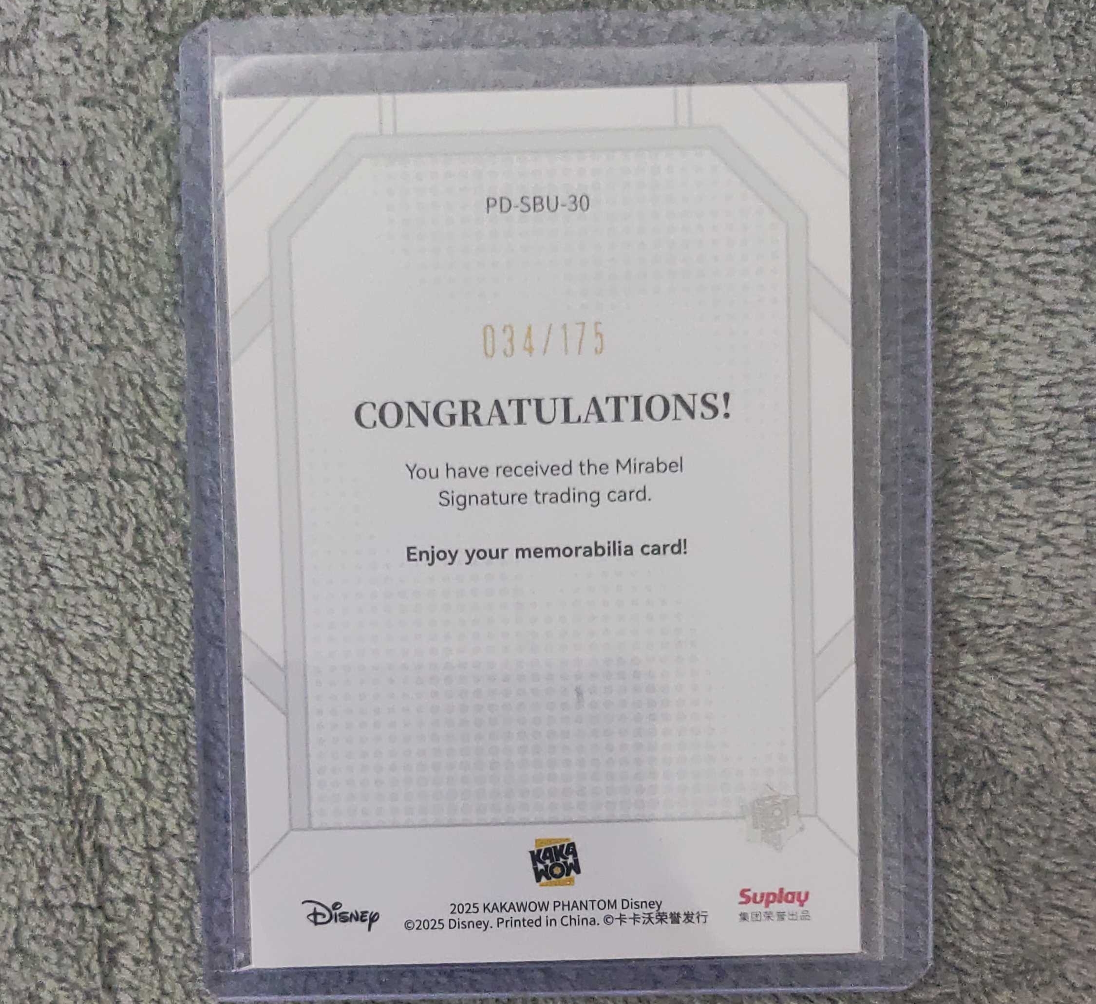 卡卡沃 Kakawow Disney 2025PHANTOM 迪士尼 珍藏卡   蓝折  175编  签字  金签