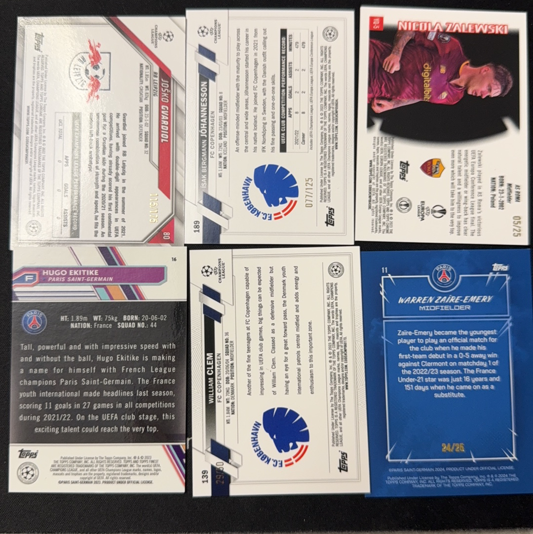2022-2023 哥本哈根 巴黎圣日耳曼 罗马 莱比锡 埃基蒂克 扎莱夫斯基 格瓦迪奥尔 埃梅里 275编 175编 125编 50编 25编 低编 6张打包 卡品如图