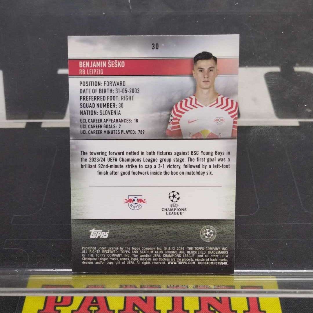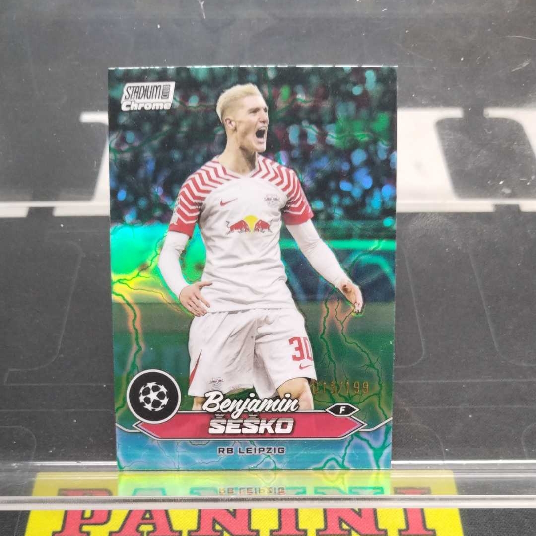 2024 Topps Stadium Club Chrome BENJAMIN SESKO 【伯纳乌代卖】欧冠 竞技场 赛斯科 15/199 带编 绿闪电折 折射 特卡 莱比锡红牛 德甲 微瑕(莫斯哈)