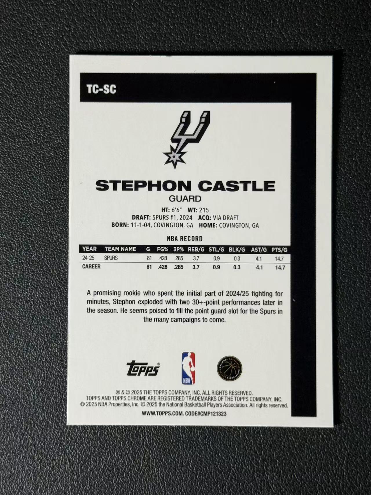 2025 Topps Flagship Stephon Castle Topps 篮球旗舰 斯蒂芬 卡斯尔 马刺 最佳新秀 文班亚马队友 Mojo折 Chrome 卡品如图 Kuz33