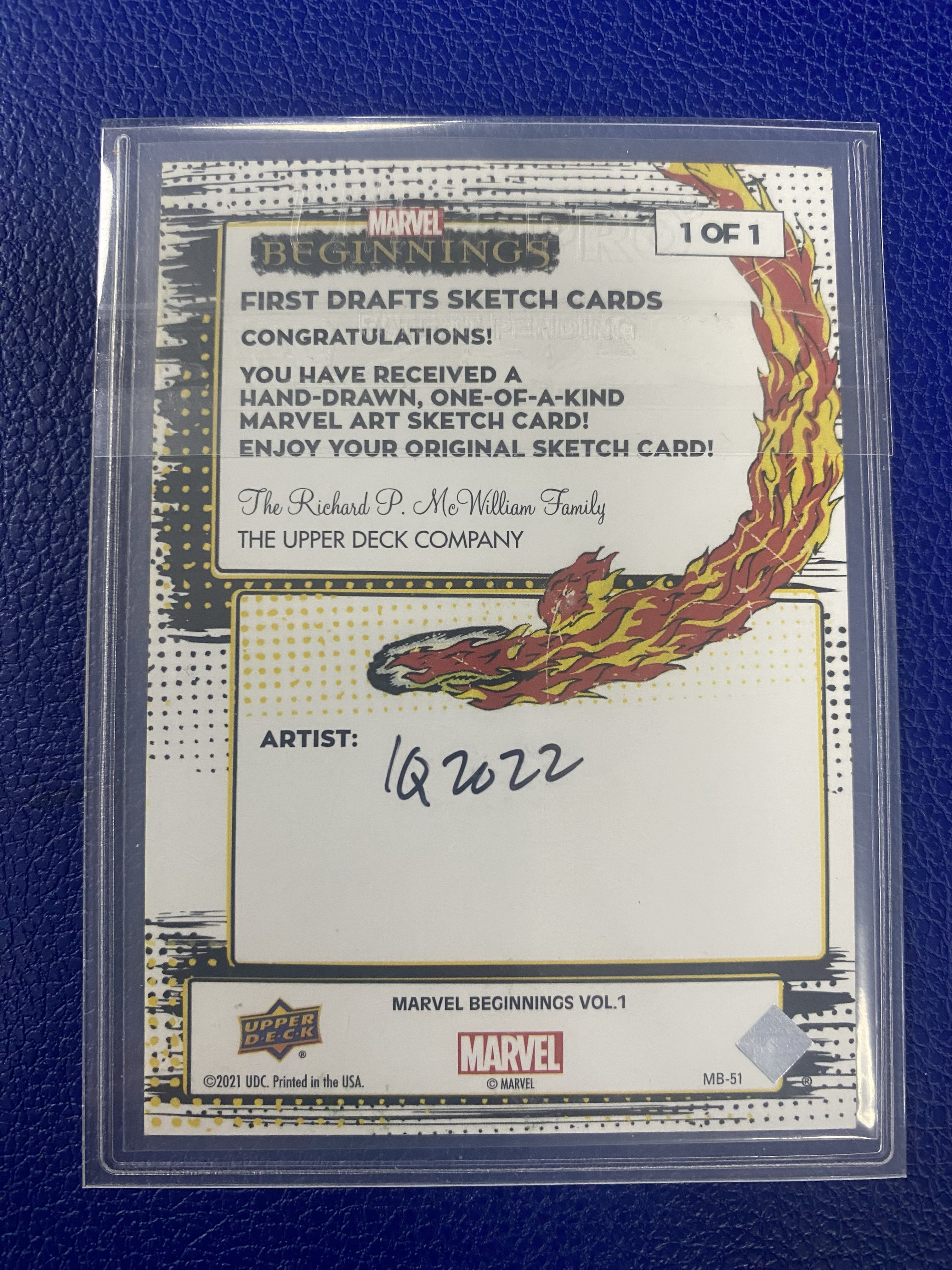 2021 Upper Deck Marvel Beginnings Vol.1 漫威 开端 手绘素描卡 MB-51 《恶灵骑士》1/1 签名 知名画师:IQ 2022