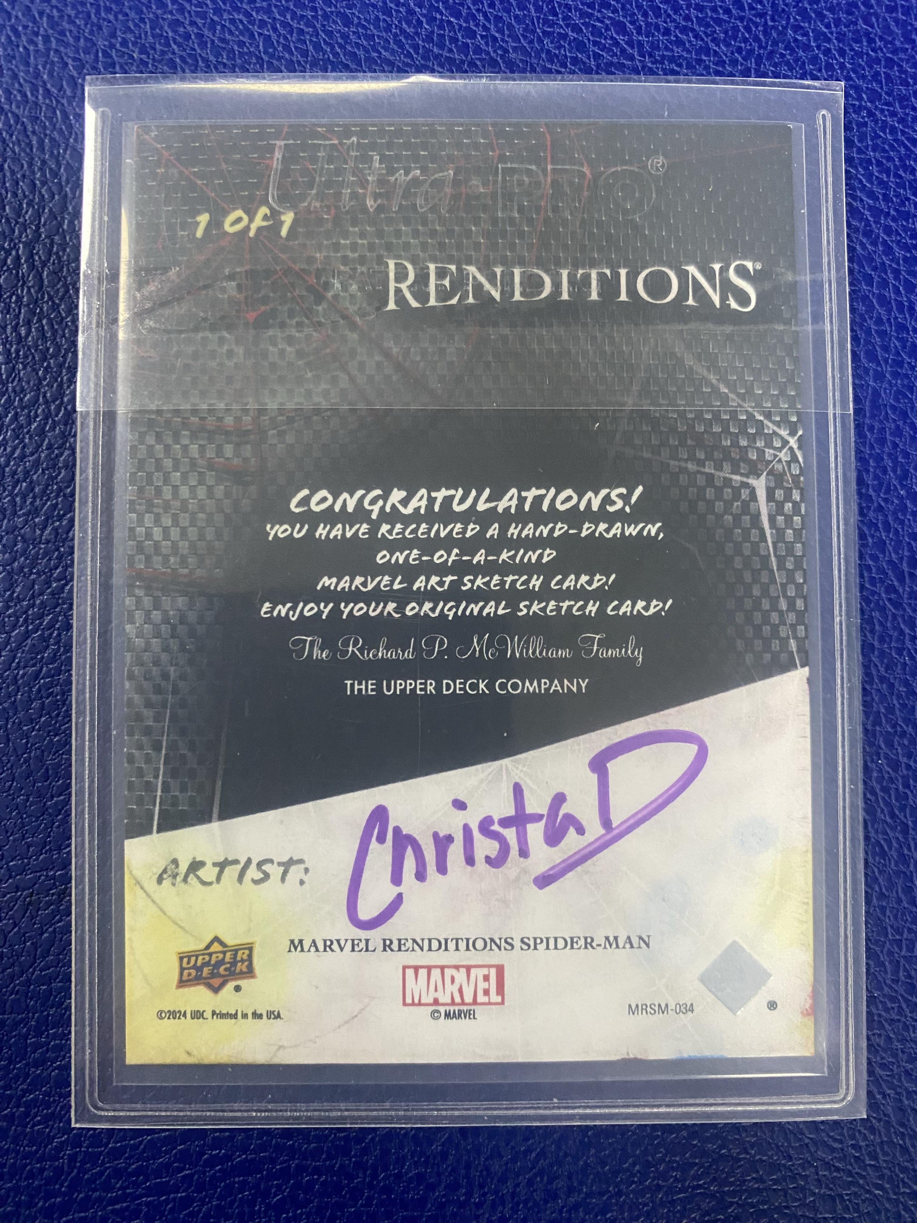 2024 Upper Deck 漫威蜘蛛侠演绎系列 手绘素描卡 MRSM-034 《蜘蛛侠(Q版)》1/1 孤品 知名画师:Christa D 超可爱画风