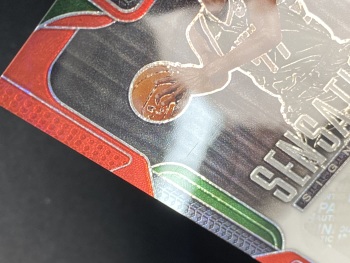 【关于卡品】:①出价即认同品相详情及拍卖规则,概不退换;②签字墨迹及卡片品相均如图,请看清楚细节图再拍,图片很清楚,需要细节图请提前咨询站内信或VX;③折射系列经常会有一道横线印刷线是出品印刷问题,不属于卡品残次范畴。国宝、IMM、NOIR等厚卡有轻微白边白角属于正常现象!镜面系列等卡面轻印划痕、印刷自带痕迹或覆膜不平起泡等卡片自身问题均为通行品。老卡有白边白角属于正常卡品。评级卡砖上的划痕和破损以及评级砖内的卡有卡品问题一律不属于品相问题。PZ、OP等各种折射系列表面的轻微划痕为正常卡品。关于以上卡品问题请确认无误再出价,介意者勿拍,要评级追求金标和10分者请直接购买评级卡。④快递过程中如出现包装破损、暴力变形、遗失等问题,请自行联系顺丰客服处理理赔,提供购买订单记录和物流记录给顺丰即可,如有高价卡有保价需求,请主动联系我们!⑤所有多卡打包lots标均不保卡品,品控和艺术家勿扰,感谢理解!【任何疑问请添加咨询VX:cglgzh01】
