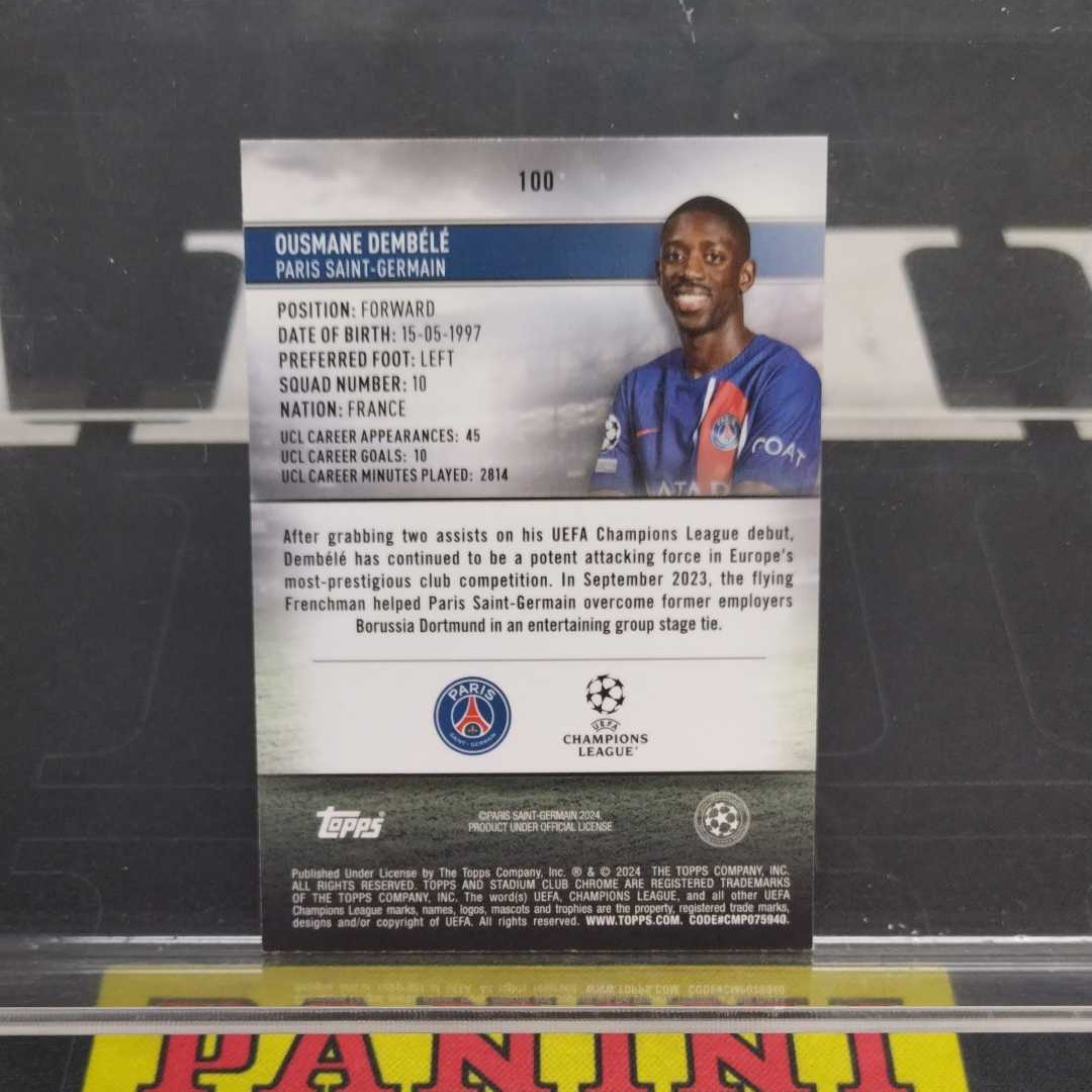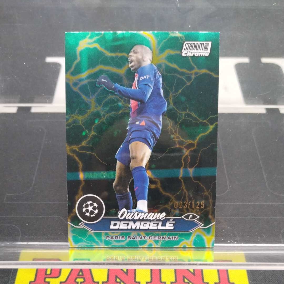 2024 Topps Stadium Club Chrome Ousmane Dembélé 【伯纳乌代卖】欧冠 竞技场 登贝莱 23/125 带编 绿闪电折 折射 特卡 巴黎 法国 金球奖 微瑕(斯)