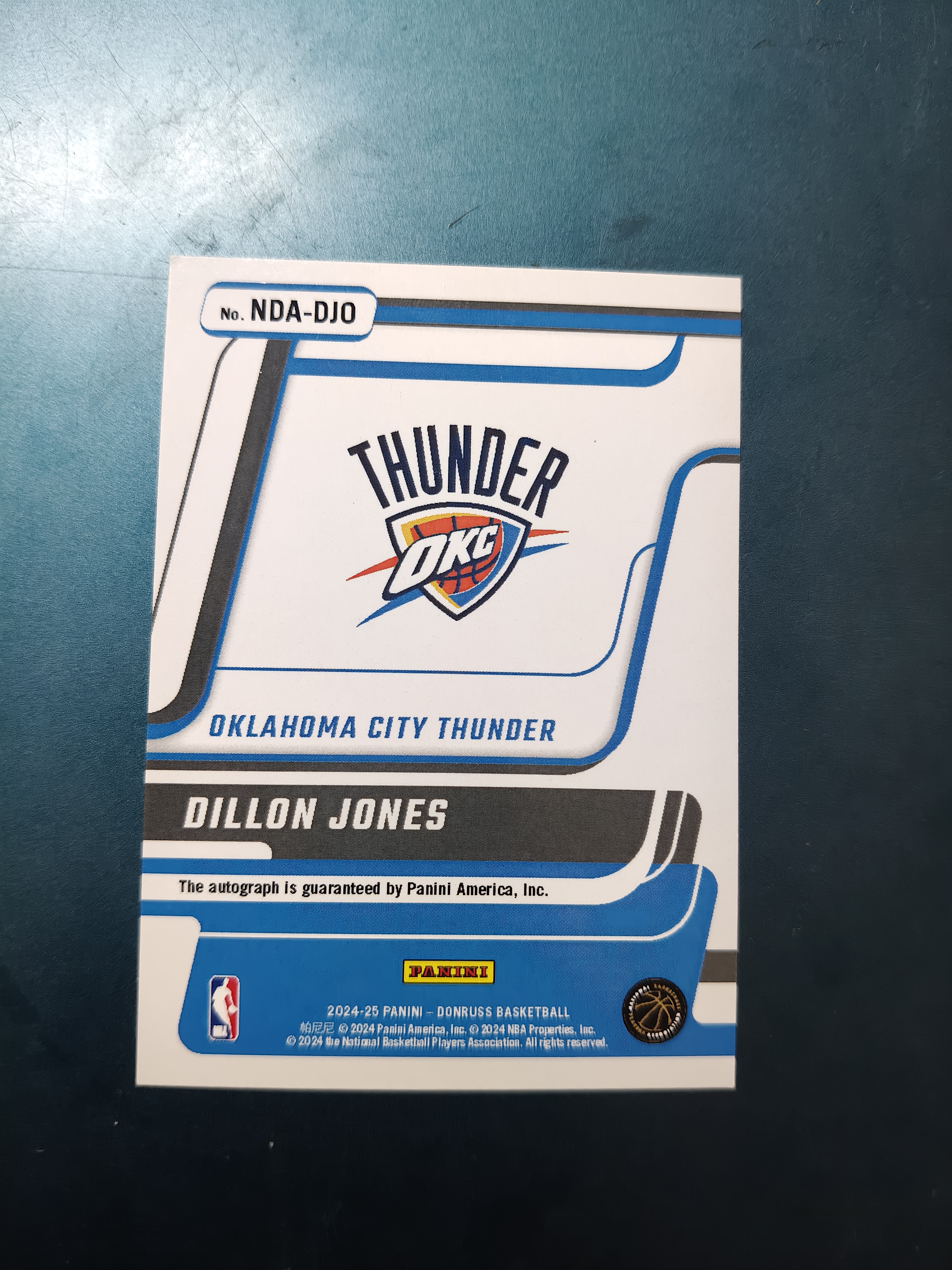 2024-25 Panini Donruss Dillon Jones RC 杜蕾斯 雷霆 狄龙 琼斯 新秀 Next Day 明日签 卡签 签字 微瑕疵如图