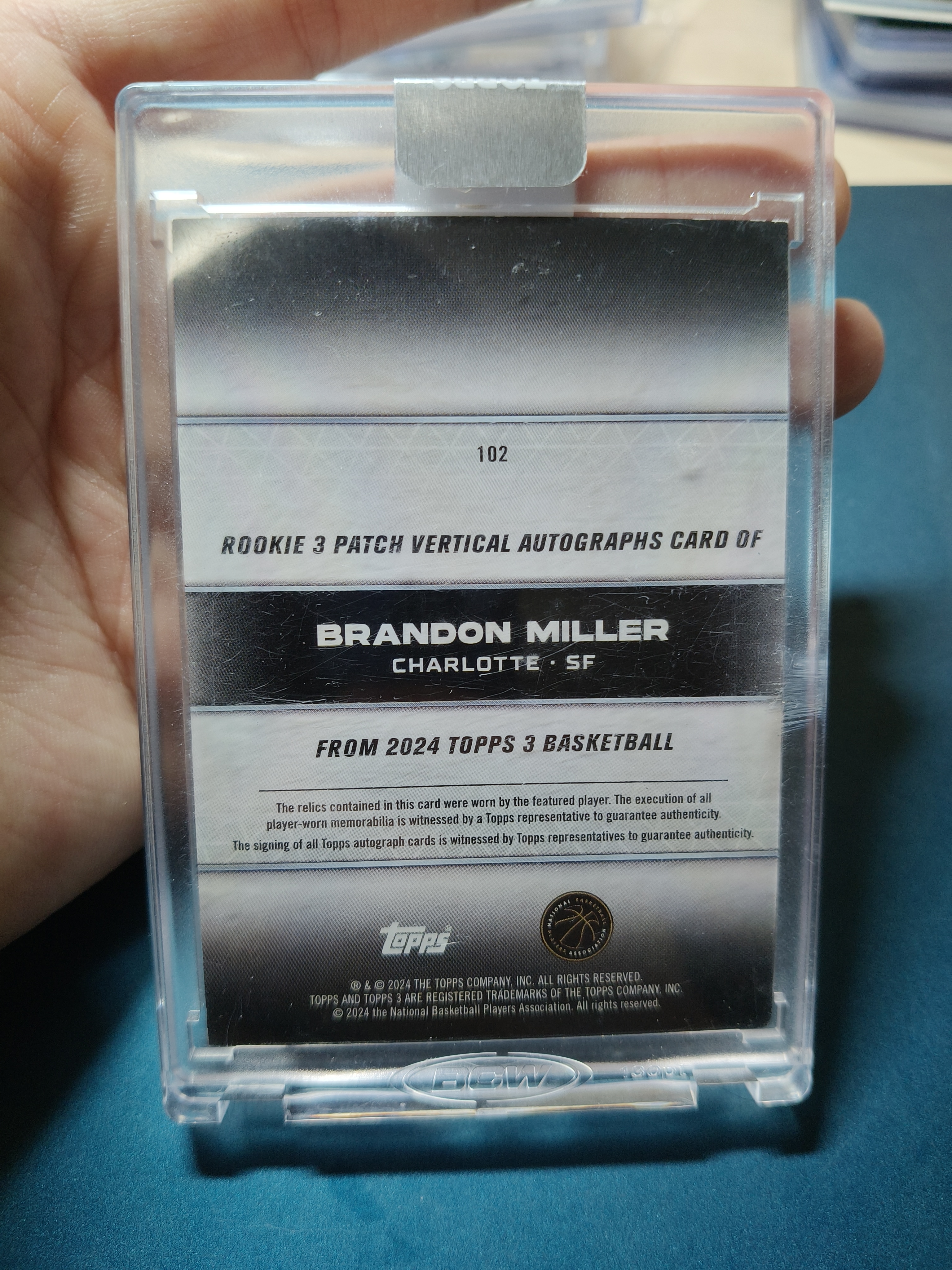 2024 Topps 3 Brandon Miller RC 签字 新秀 布兰登 米勒 物料 球衣 三窗 暴力切割 卡签 RPA 49编 原封砖 三张系列 细节如图 黄蜂 三球队友