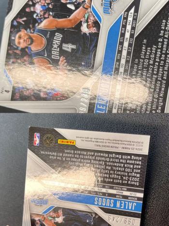 卡品:劳烦仔细看图!!!截标之前可找客服寻要细节照片或者细节视频,一旦出价默认接受卡品(不接受一系列没拍特写,自己没看仔细不想要等理由退换货)截标后不提供任何细节图!如无图片特殊展示瑕疵均为通行品相,一般prizm optic 等系列薄卡的小划痕印刷线,镜面有划痕属于正常品相,国宝IMM等系列厚卡的小白边小白角翘角钝角等,都属于通行品相。完美主义者请直接购买PSA10或者公博金标,发货之后不退不换(购卡的买家拆快递的时候也请拍开箱视频以便维护自己的权益)