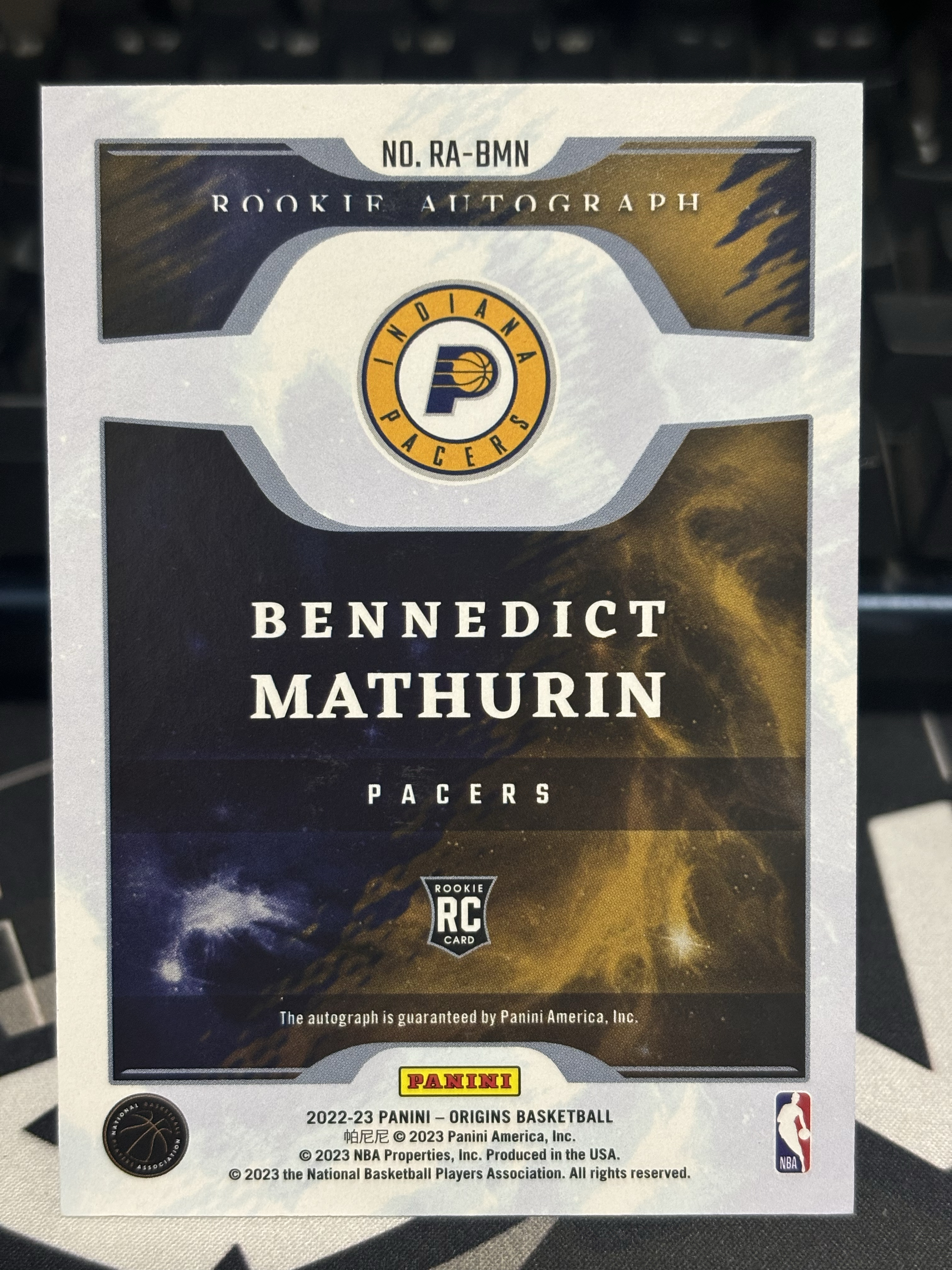 2022-23 Panini Origins Bennedict Mathurin RC 起源 步行者队 本尼迪克特 马图林 马瑟琳 新秀 宇宙签字 卡签 哈利伯顿队友 保罗 班凯罗、霍姆格伦同届