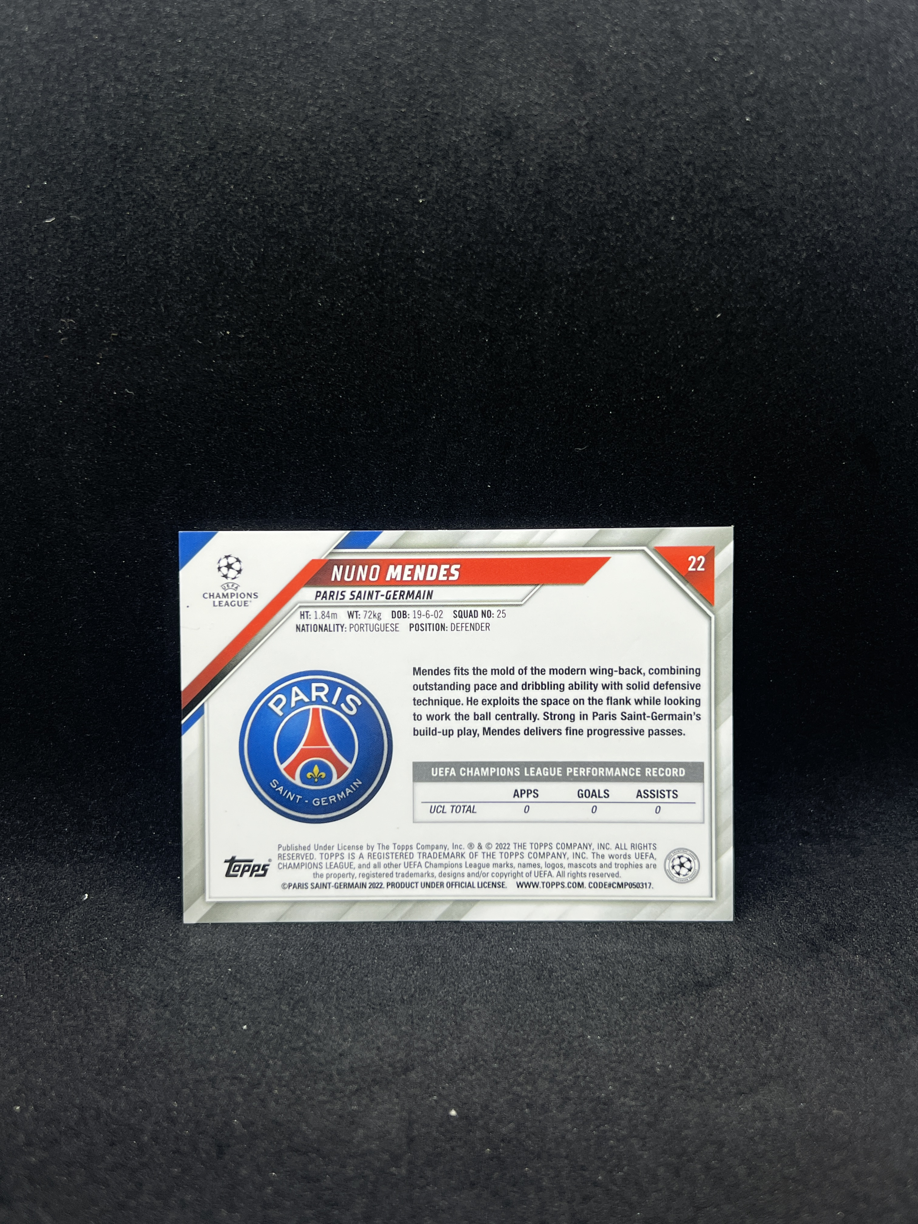 2021-22 Topps Chrome Nuno Mendes RC 【严选代拍】欧冠 蓝宝石 tc 大巴黎 新秀 努诺 门德斯 蓝碎冰折 卡品如图 拍前看描述 Jinx
