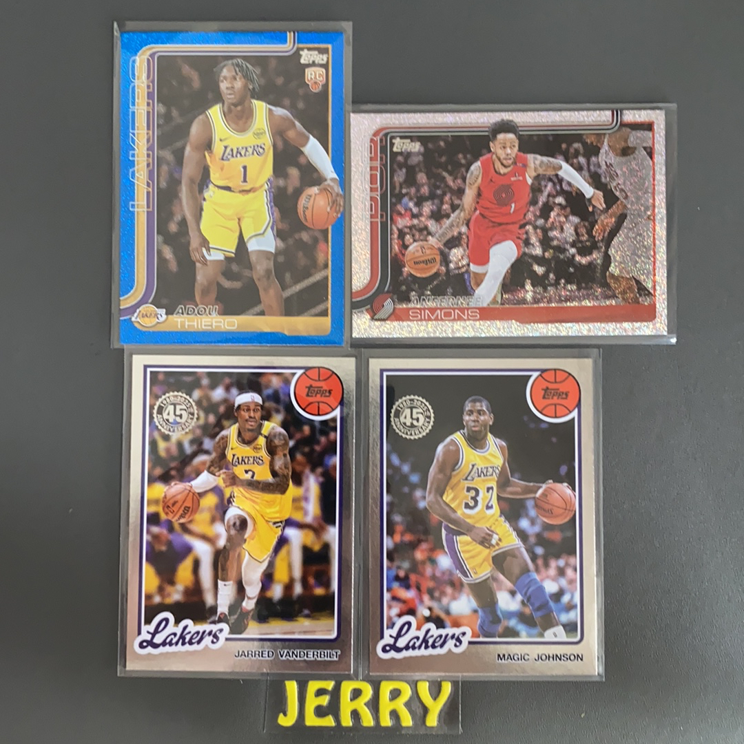 2025-26 Topps NBA Basketball Adou Thiero RC tc 45周年 湖人 阿杜 蒂耶罗 新秀 蓝折 开拓者 西蒙斯 银折 湖人 约翰逊 base 4张打包【留学生】