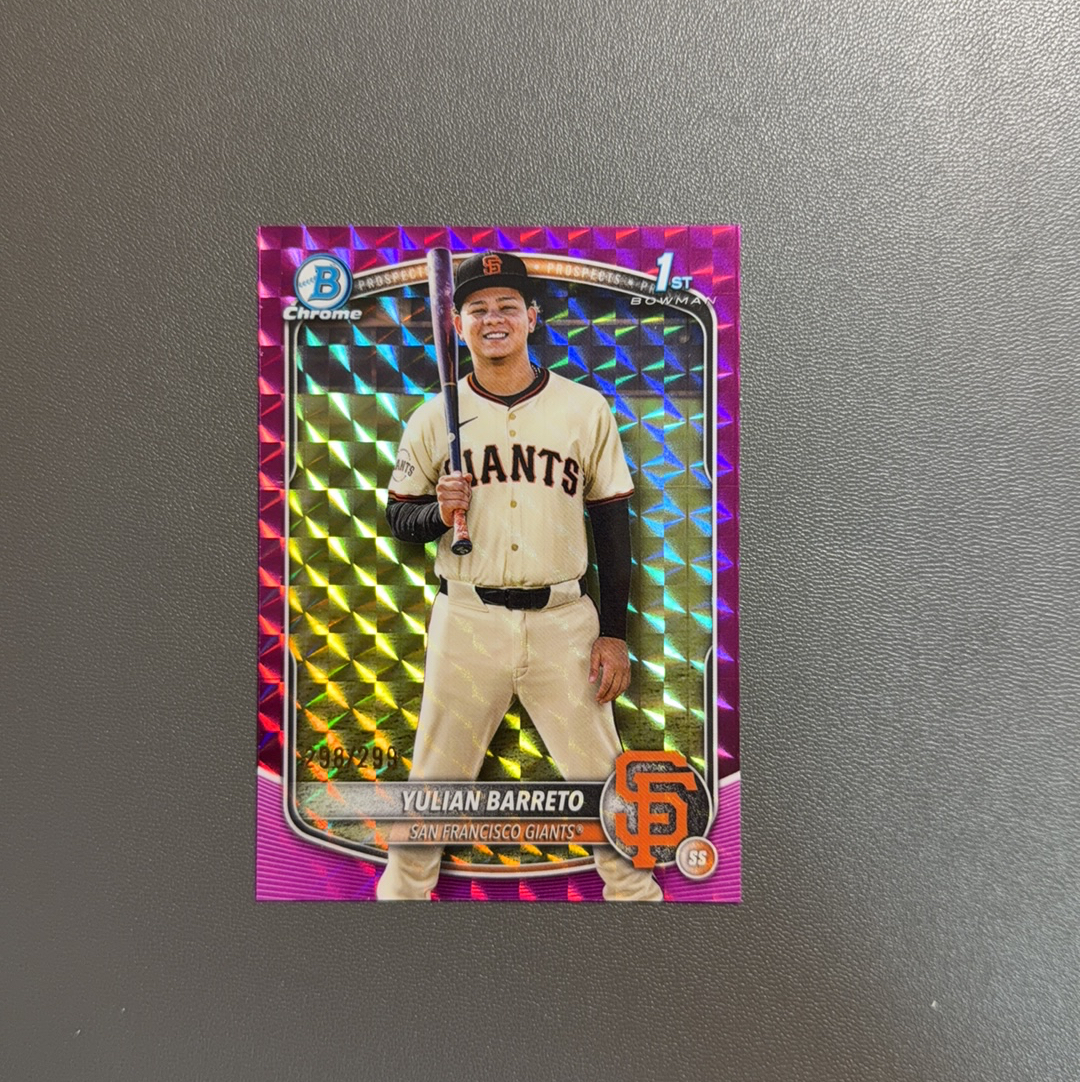 2025 Topps bowman chrome yulian barreto RC 旧金山巨人 新秀 巴雷托 298/299编 粉折 粉mojo折 卡品如图【雄鹰】