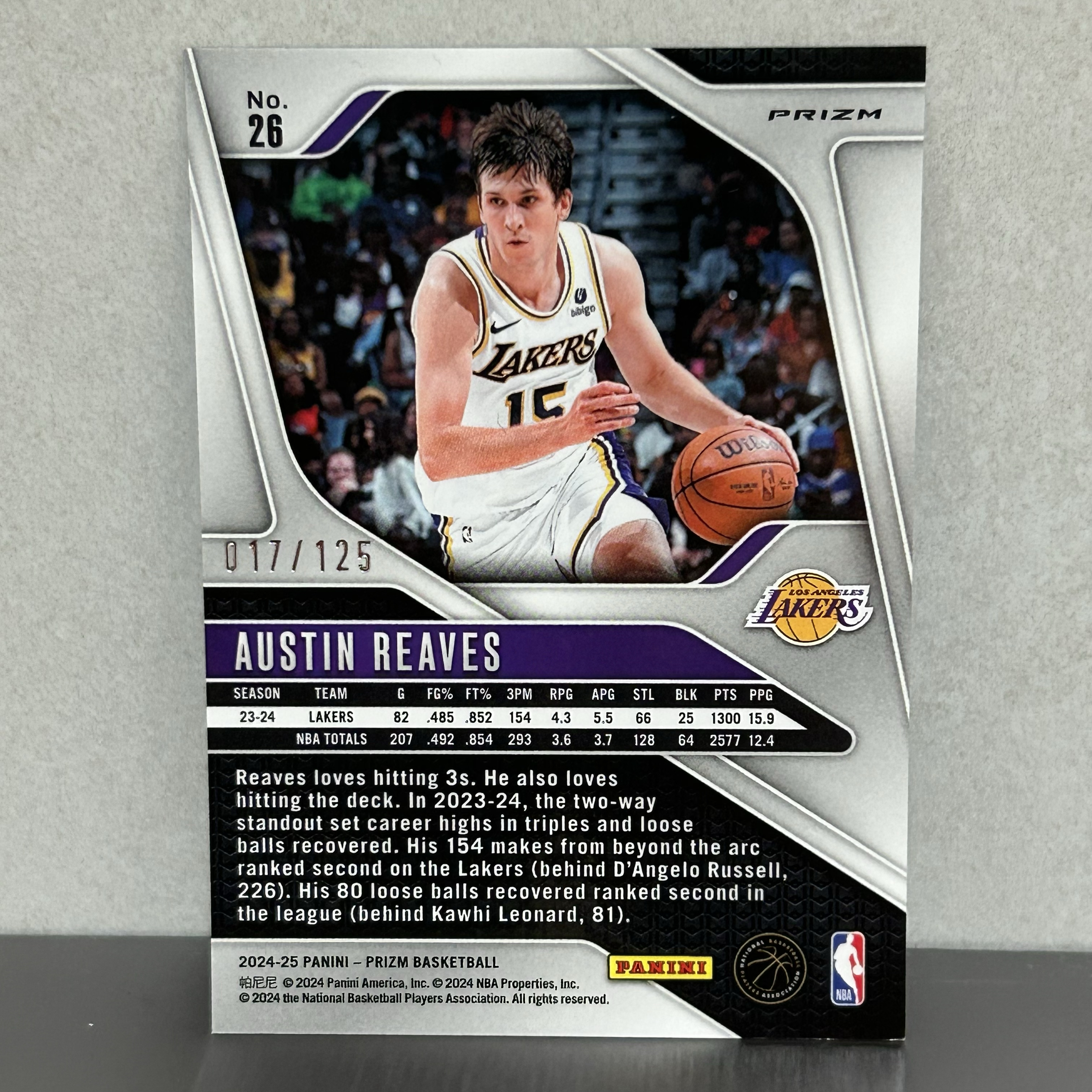 2024-25 Panini Prizm Austin Reaves 【雷霸龙-拍卖】末年绝版 湖人太子 里皇 奥斯汀-里夫斯 里弗斯 彩虹折射 125编 蓝碎冰折 硬通货