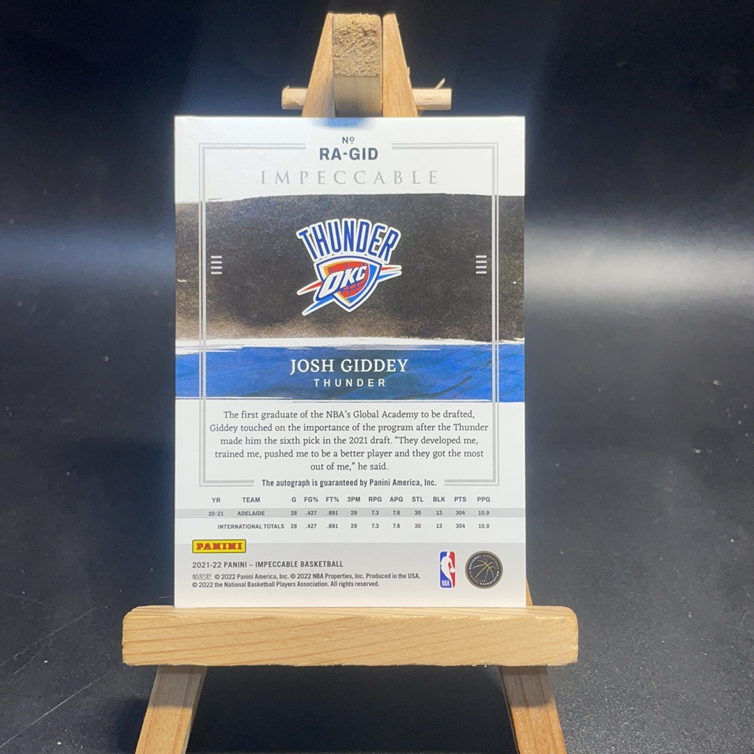 2021-22 Panini Impeccable Josh Giddey RC 小真金 雷霆 新秀RC 约什 吉迪 签字 卡签 99编 微瑕如图 g哥