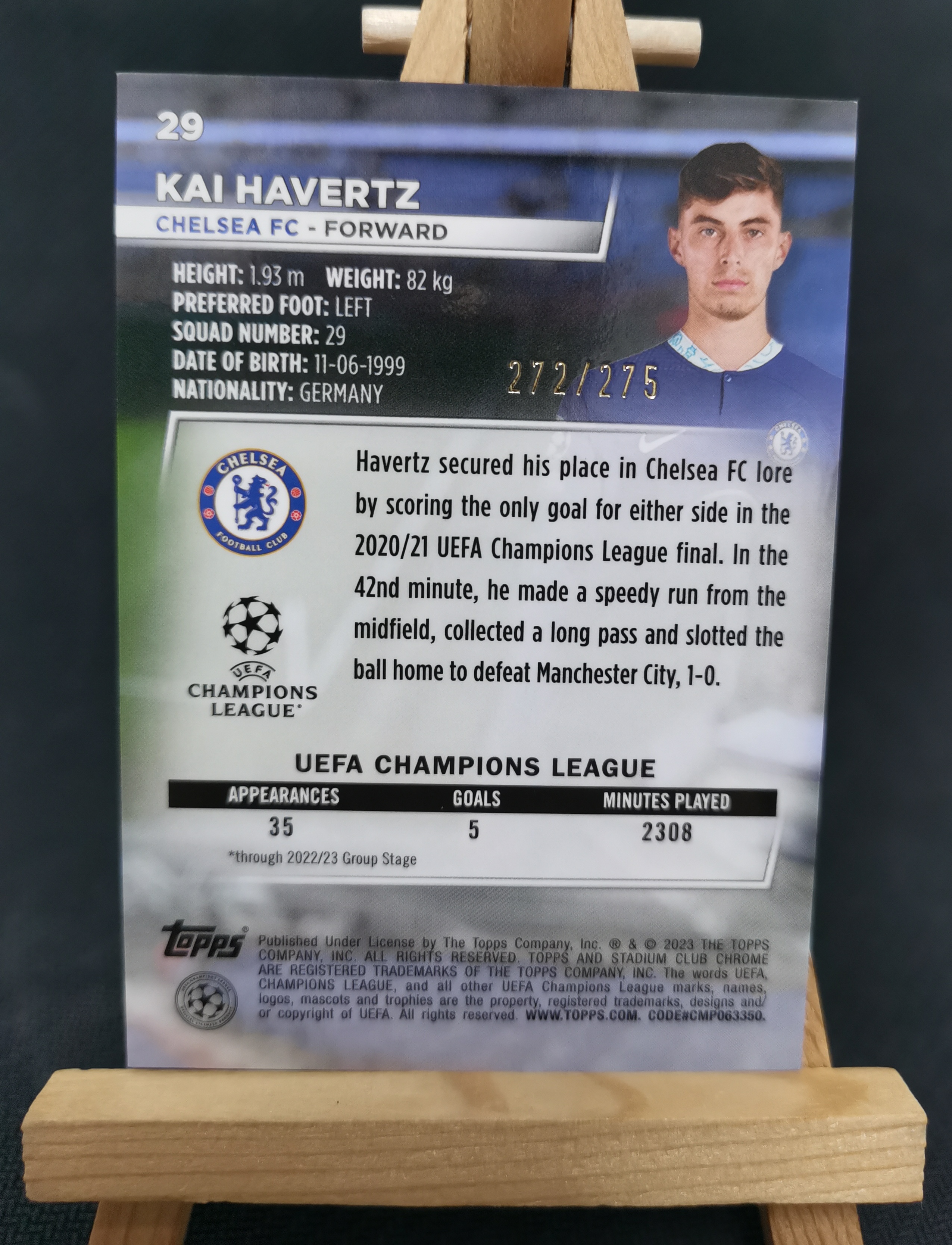 2023 Topps Stadium Club Chrome Kai Havertz 欧冠竞技场 凯 哈弗茨 275编 青波纹折 折射 切尔西 阿森纳 德国 卡品如图