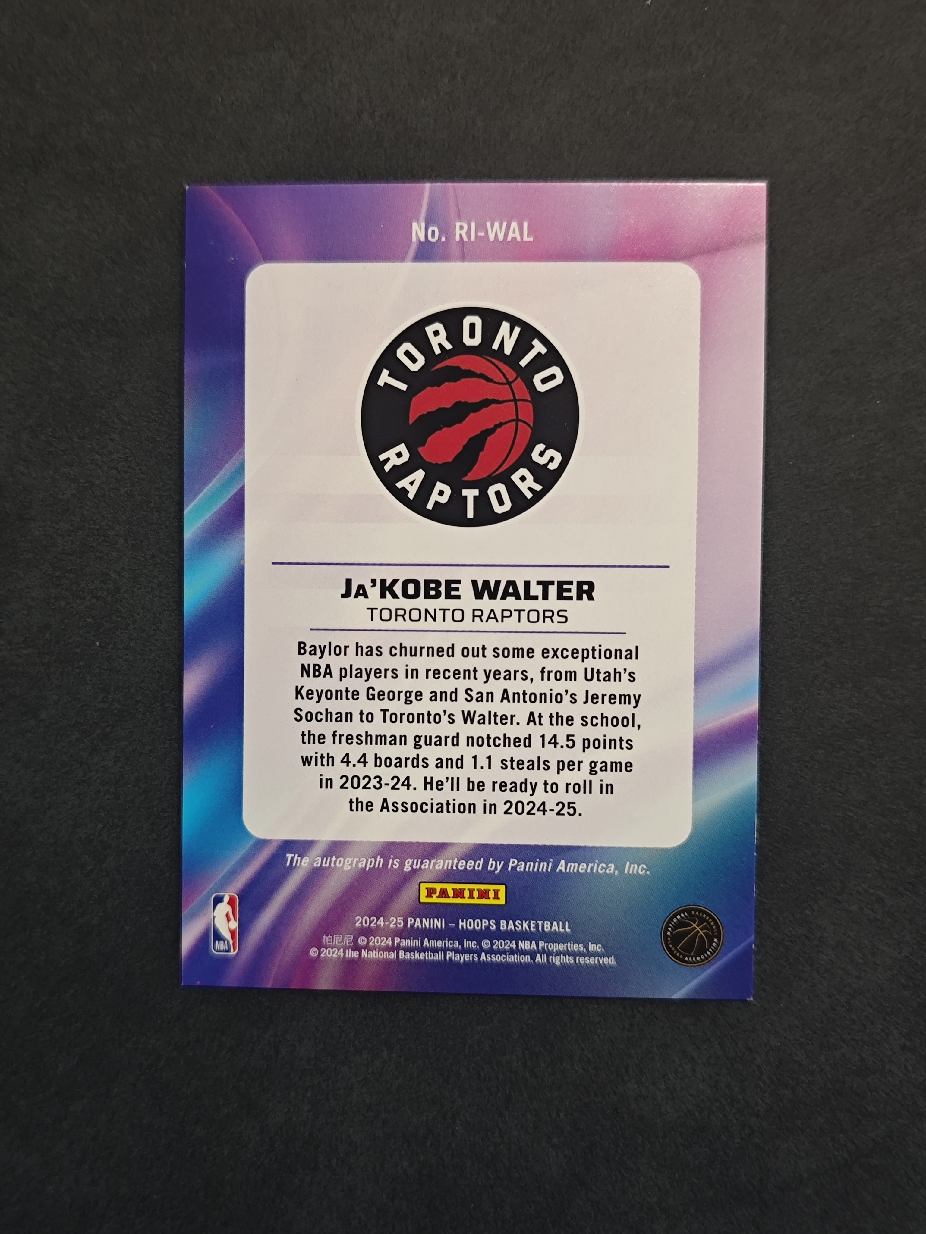 2024-25 Panini NBA Hoops Ja'Kobe Walter RC 猛龙 贾科比 沃尔特 新秀 rc 格子折 折射 签字 INK签 1/25编 相当于1/1 专收必备 瑕疵看图