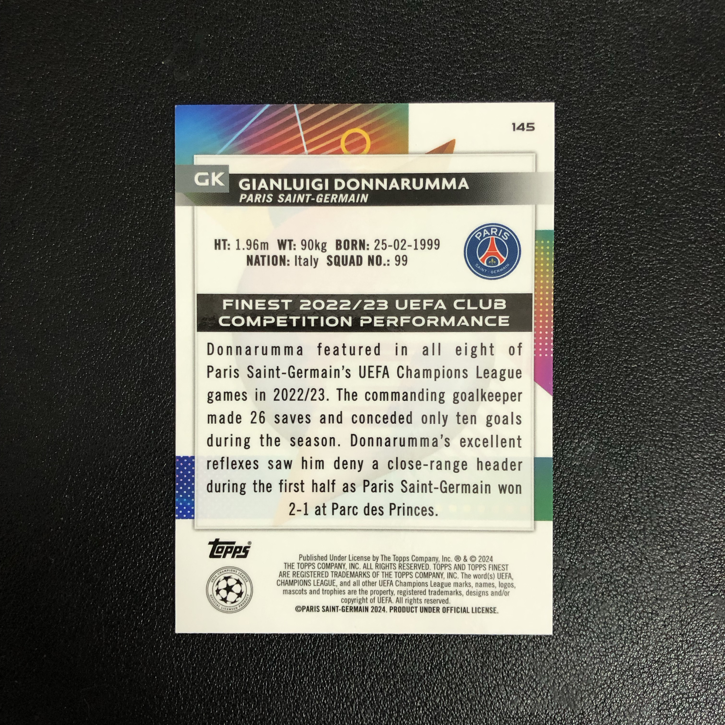 2023-24 Topps Finest Gianluigi Donnarumma 欧冠 Finest 多纳鲁马 155/250编 青折 大巴黎 卡品如图 默认微瑕 收藏必备(wzx)