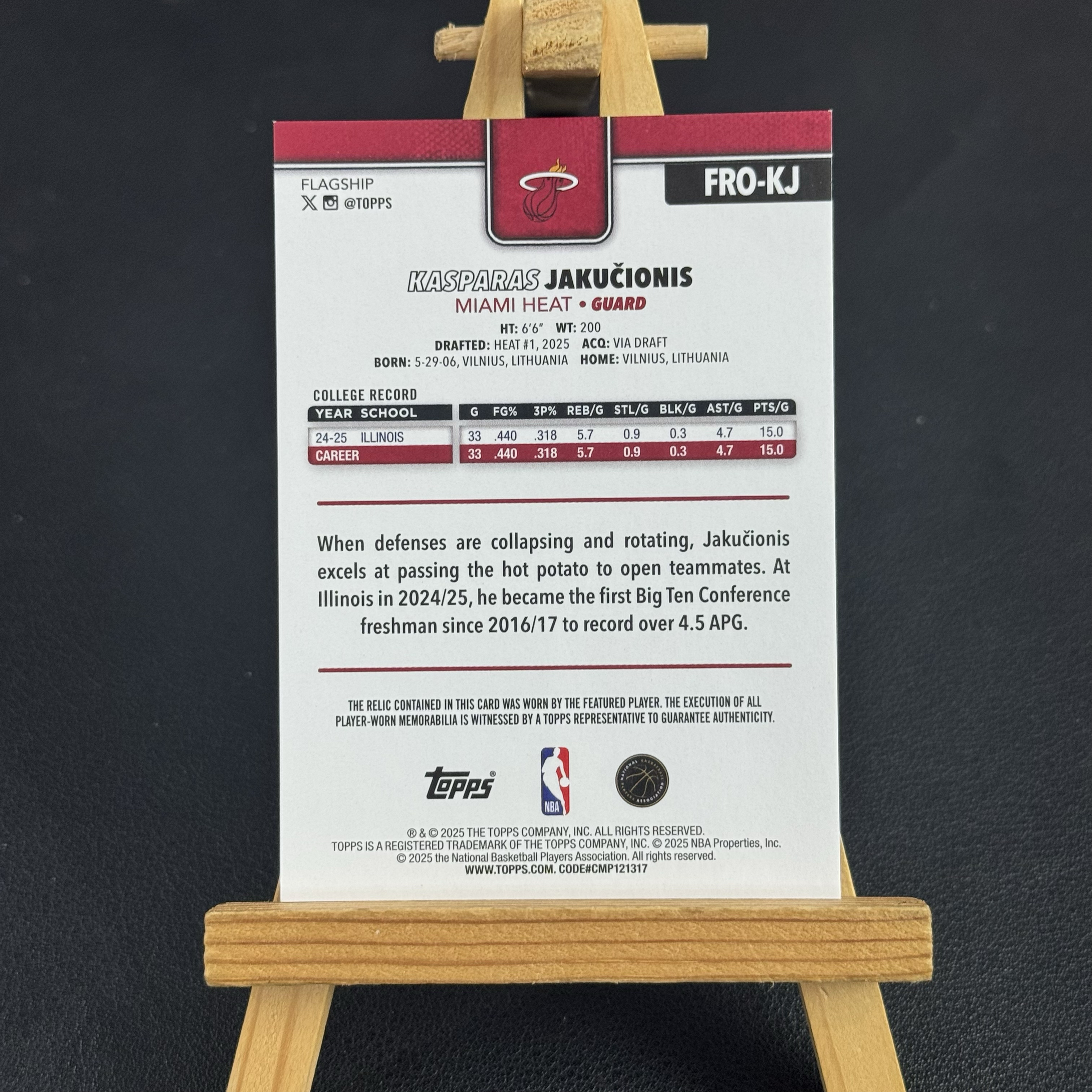 2025 Topps Basketball Kasparas Jakucionis RC 卡斯帕拉斯 亚库西奥尼斯 亚库契奥尼斯 /50编 金折 热火新秀 25年首轮秀 首版球衣切割物料 可鲍