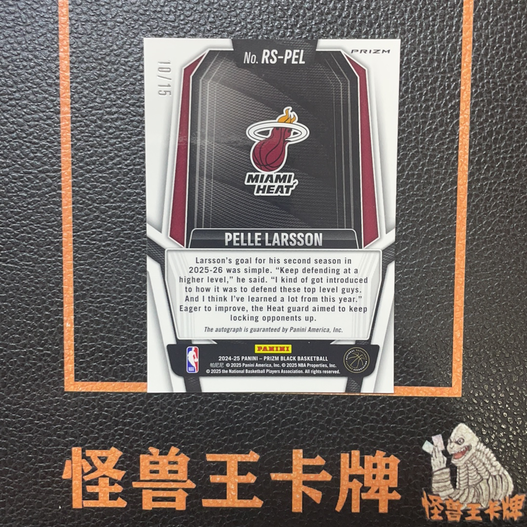 (怪兽拍卖) GSW-AA不死鸟 2024-25 Panini prizm black Pelle Larsson RC 热火 新秀 佩尔 拉尔森 10/15编 蛇皮折 签字