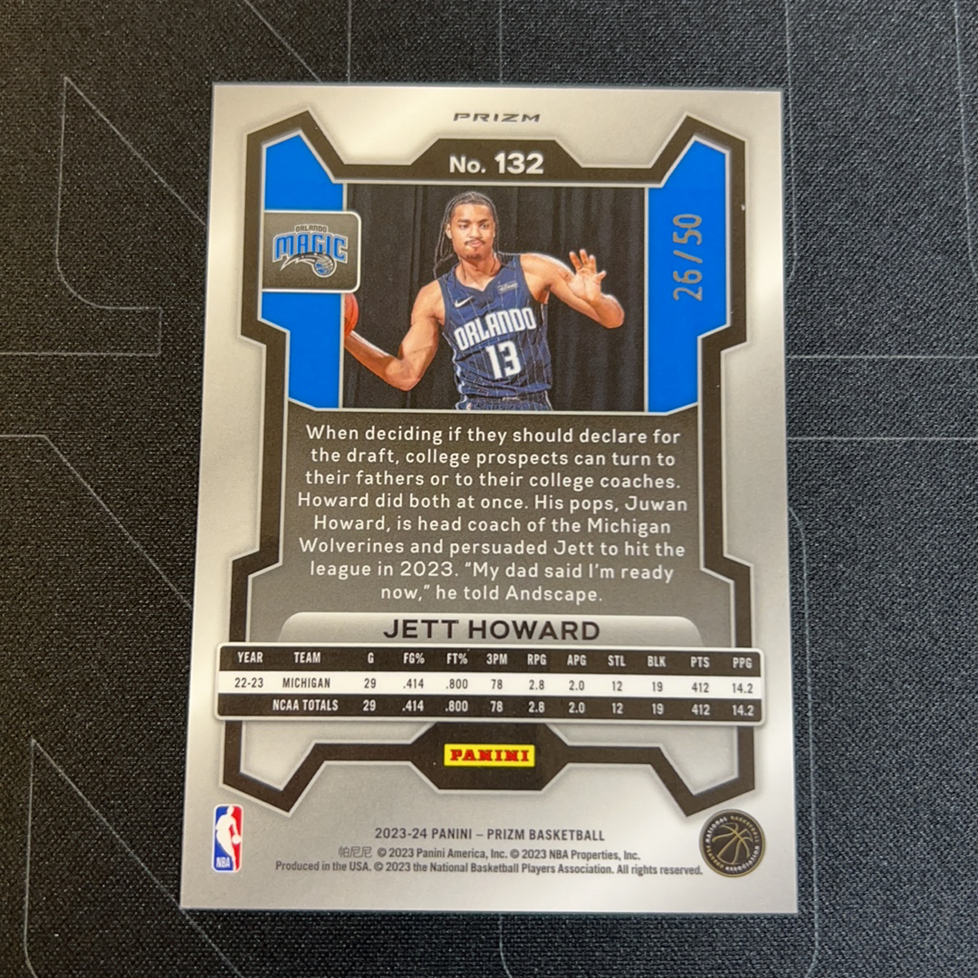 【风速狗】2023-24 Panini Prizm 篮球pz Jett Howard RC 杰特 霍华德 新秀 pz 折射 26/50编 卡背轻印 nana