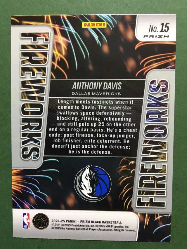 2025 Panini Prizm Anthony Davis pz Black 独行侠 安东尼 戴维斯 浓眉 银折 折射 FIREWORKS 烟花特卡 鹈鹕 湖人 顶级内线 弗拉格队友 卡品如图#叔