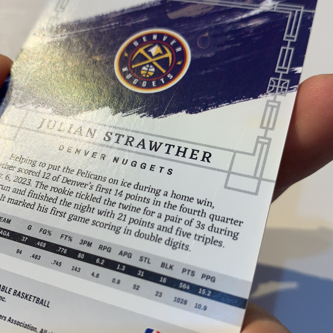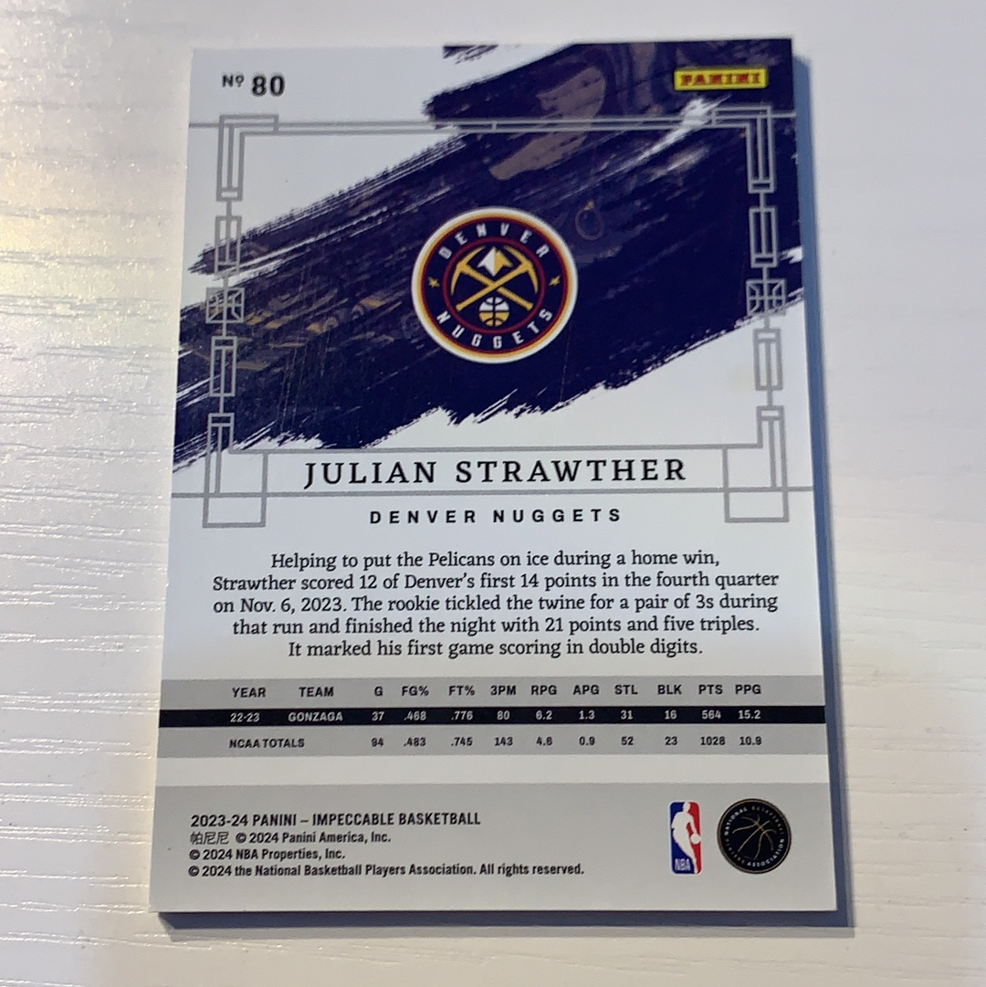 2023-24 Panini Impeccable Julian Strawther RC 新秀 朱利安 斯特劳瑟 小真金 金平行 /49编 掘金新星 固定轮换 约基奇队友 背部微瑕如图