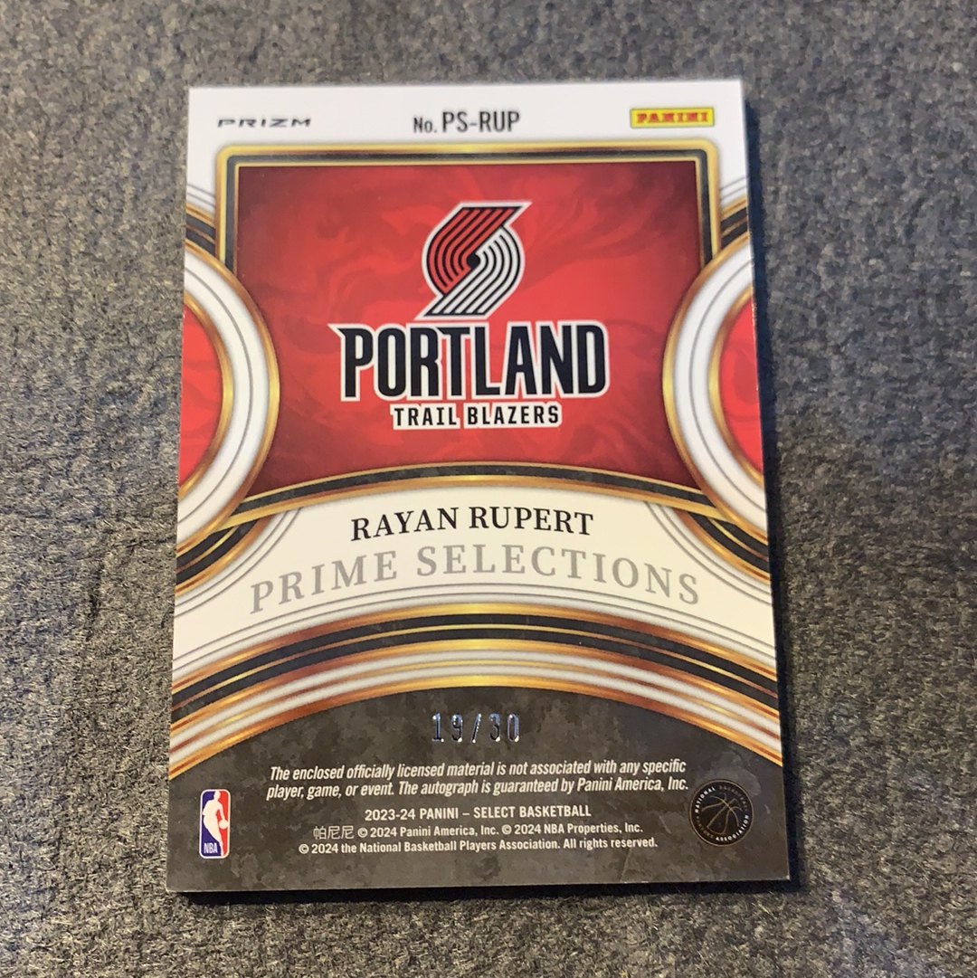 2023-24 Panini Select Rayan Rupert RC 新秀 拉扬 吕佩尔 签字 签名 rpa 橙脉冲折 超低编/30编 三色暴力切割 开拓者新星 文班亚马法国队友 杨翰森 品如图