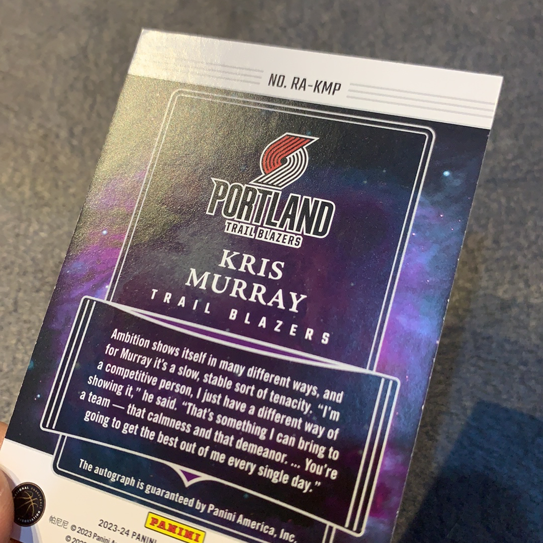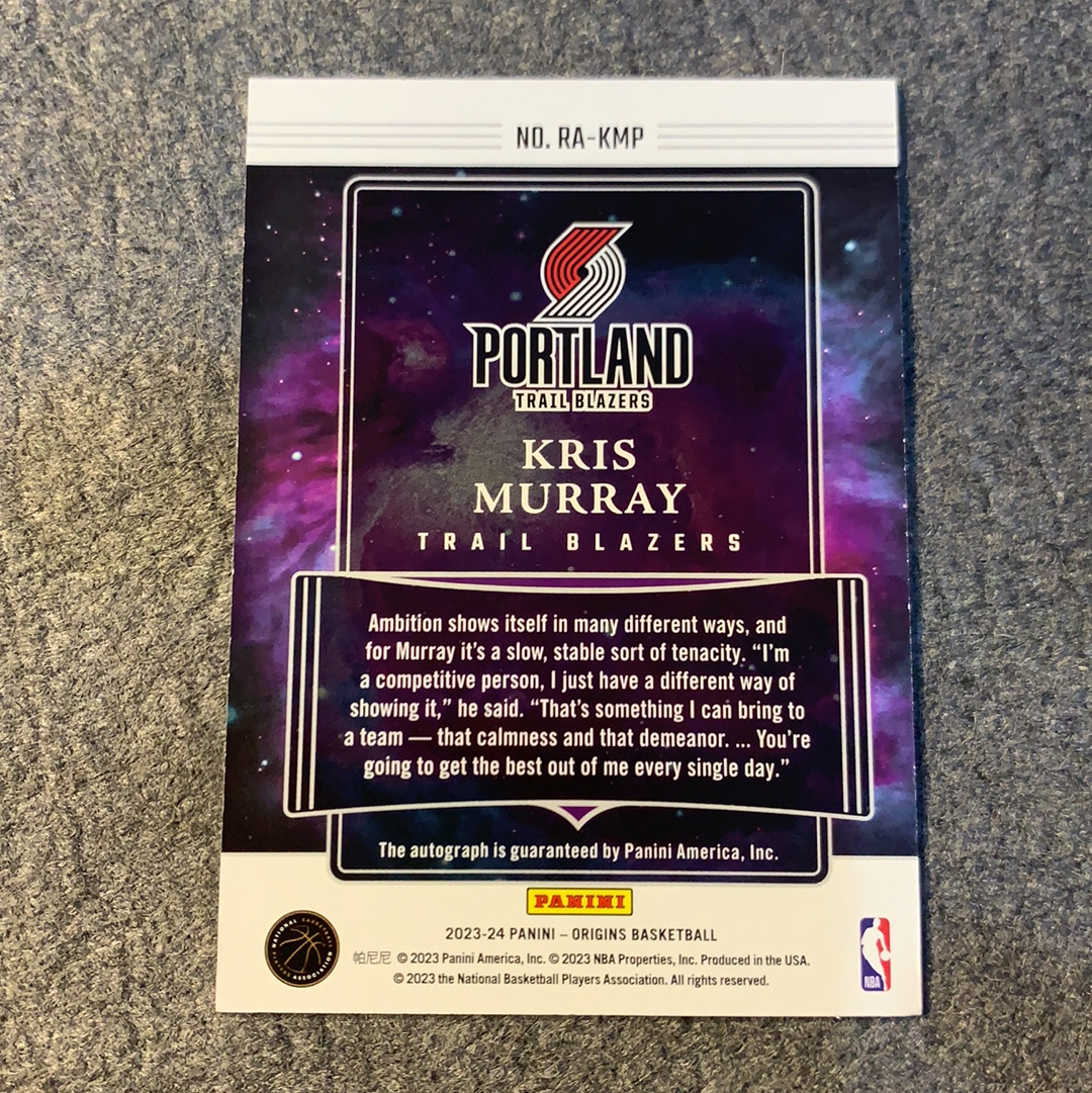 2023-24 Panini Origins Kris Murray RC 新秀 克里斯 默里 穆雷 签字 卡签 /99编 红平行 队服颜色 起源 开拓者新星 固定轮换 基根默里 杨翰森队友 卡品如图