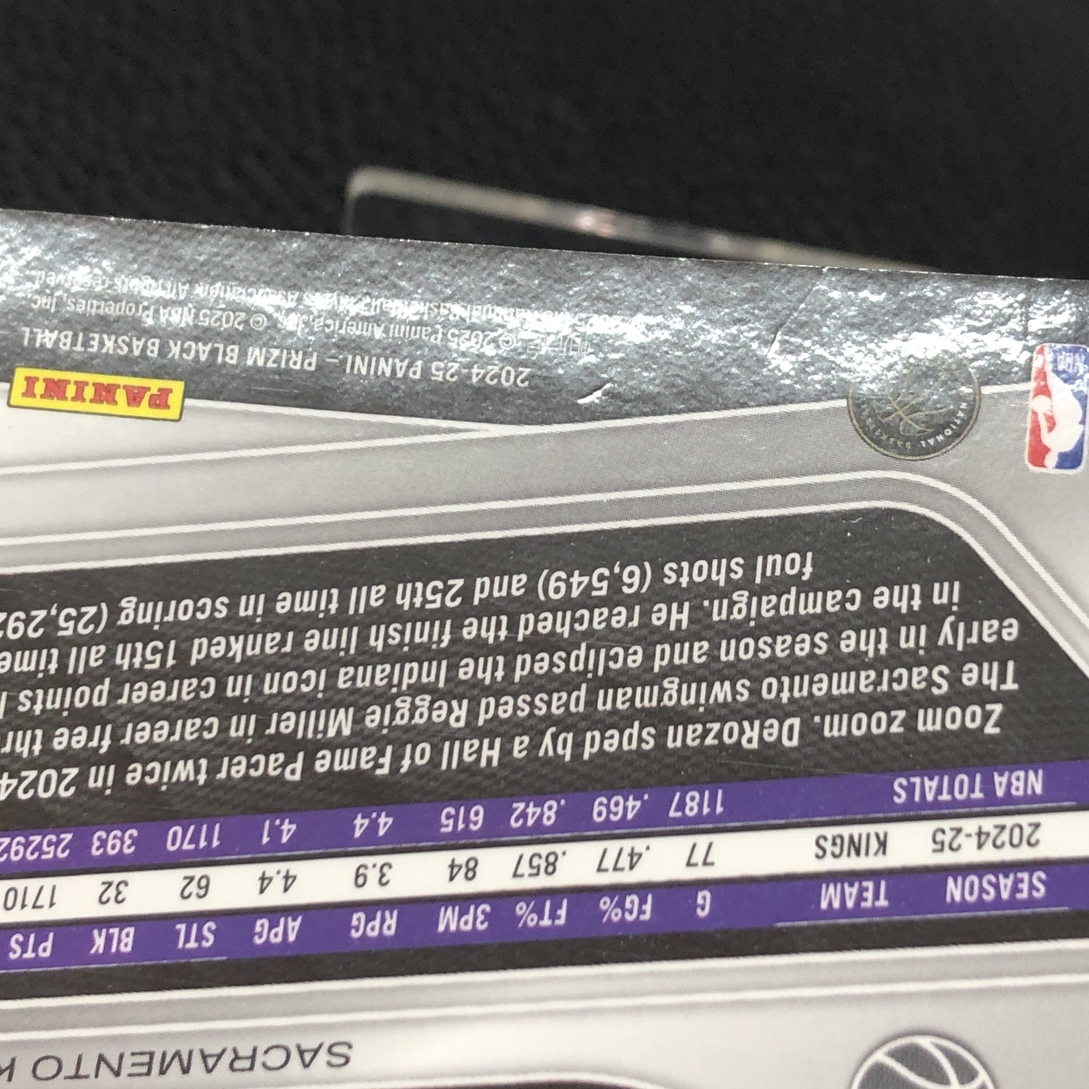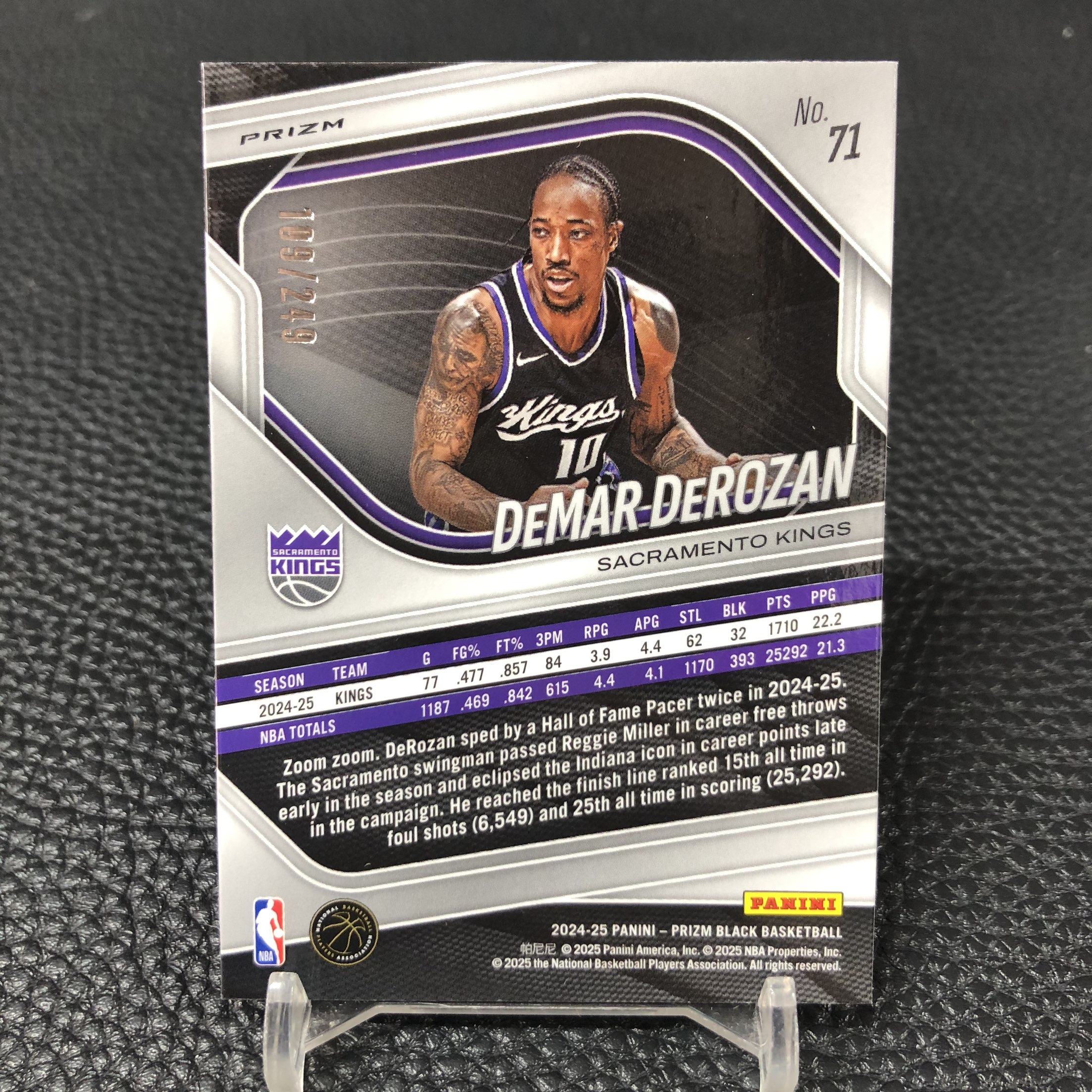 【浩行拍卖 截标预付82%】2024-25 panini prizm black demar derozan 国王 德玛尔 德罗赞 银瀑布折 折射 109/249编 专收必备 瑕疵看图「分科」1106J01驡