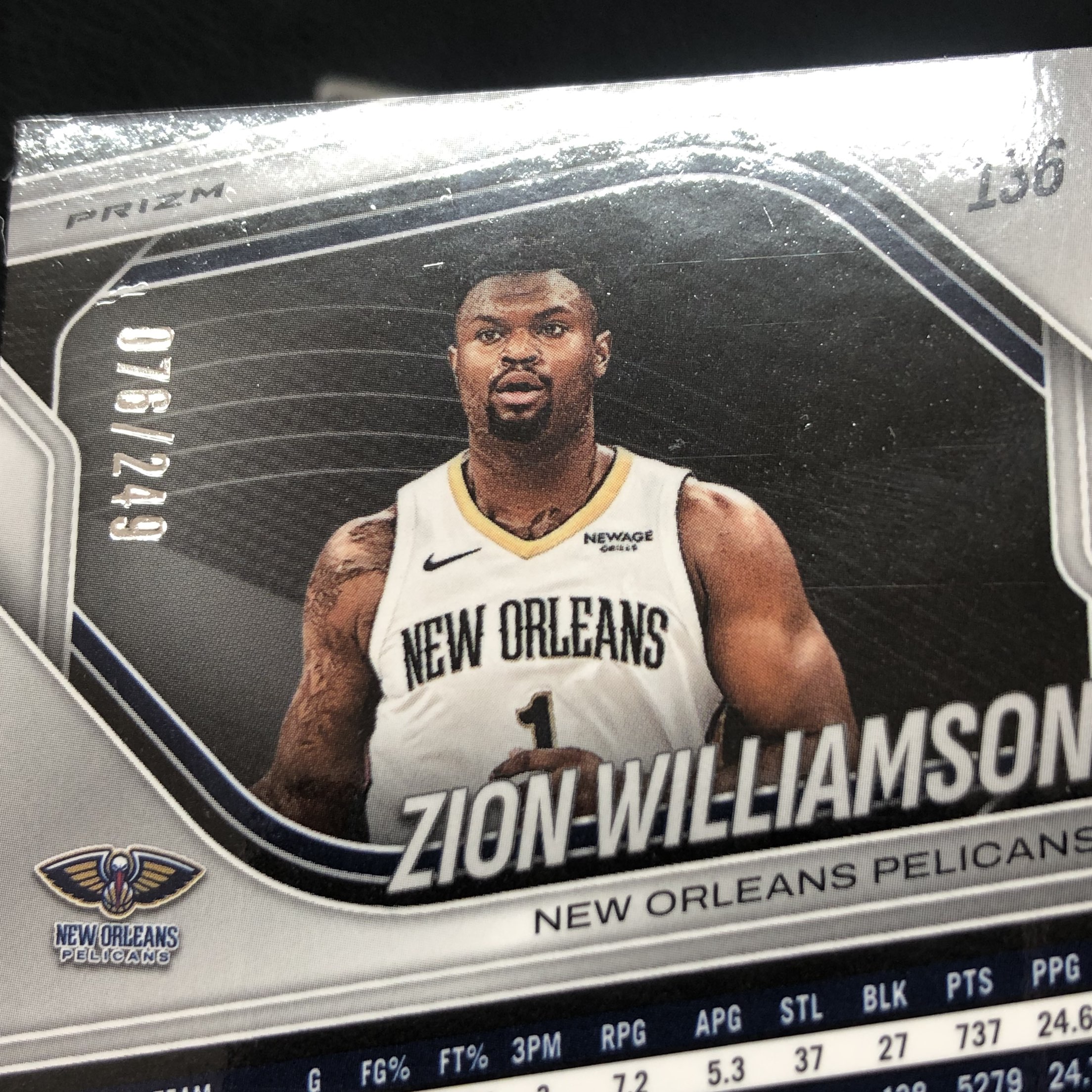 【浩行拍卖 截标预付82%】2024-25 panini prizm black Zion Williamson 鹈鹕 锡安 威廉姆森 胖虎 银瀑布折 折射 76/249编 专收必备 瑕疵看图「分科」1106J01驡
