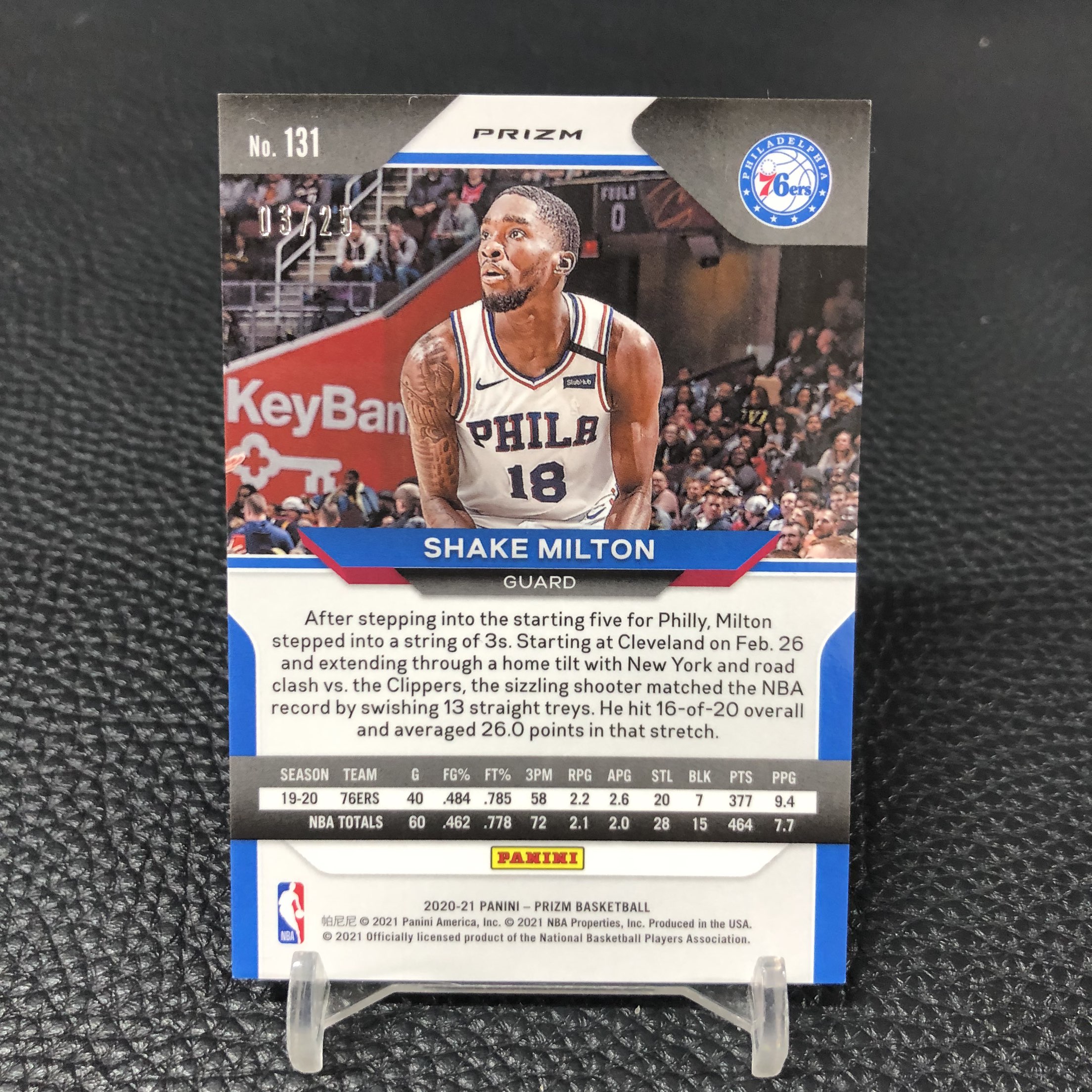 【浩行拍卖 截标预付82%】2020-21 panini prizm shake milton 76人 谢克 米尔顿 绿脉冲折 折射 3/25编 低编 专收必备 瑕疵看图「分科」1106J01驡