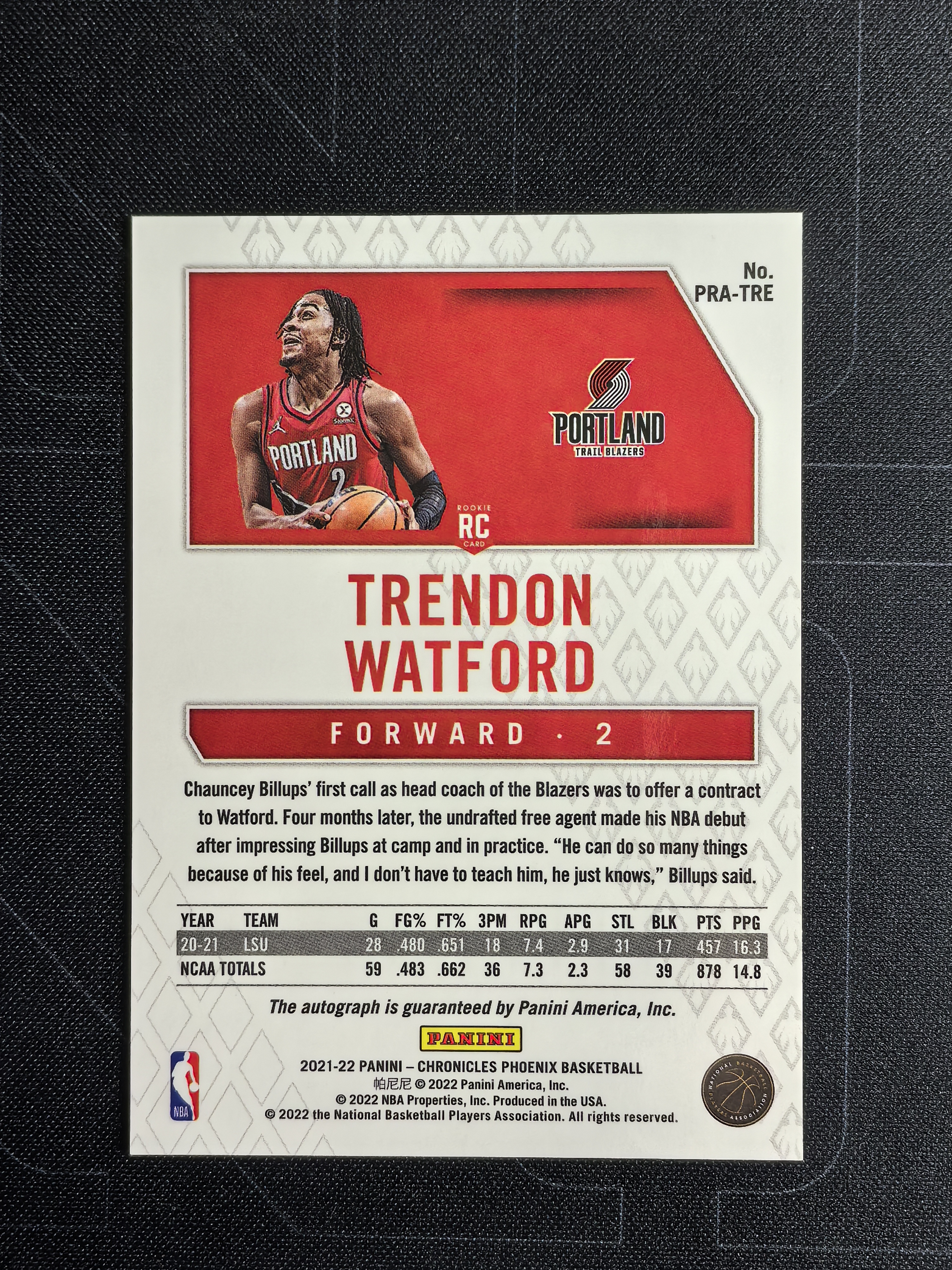 2021-22 Panini Chronicles Trendon Watford RC 年编史 特伦登 沃特福德 开拓者 RC新秀 签字 瑕疵如图 介意勿拍