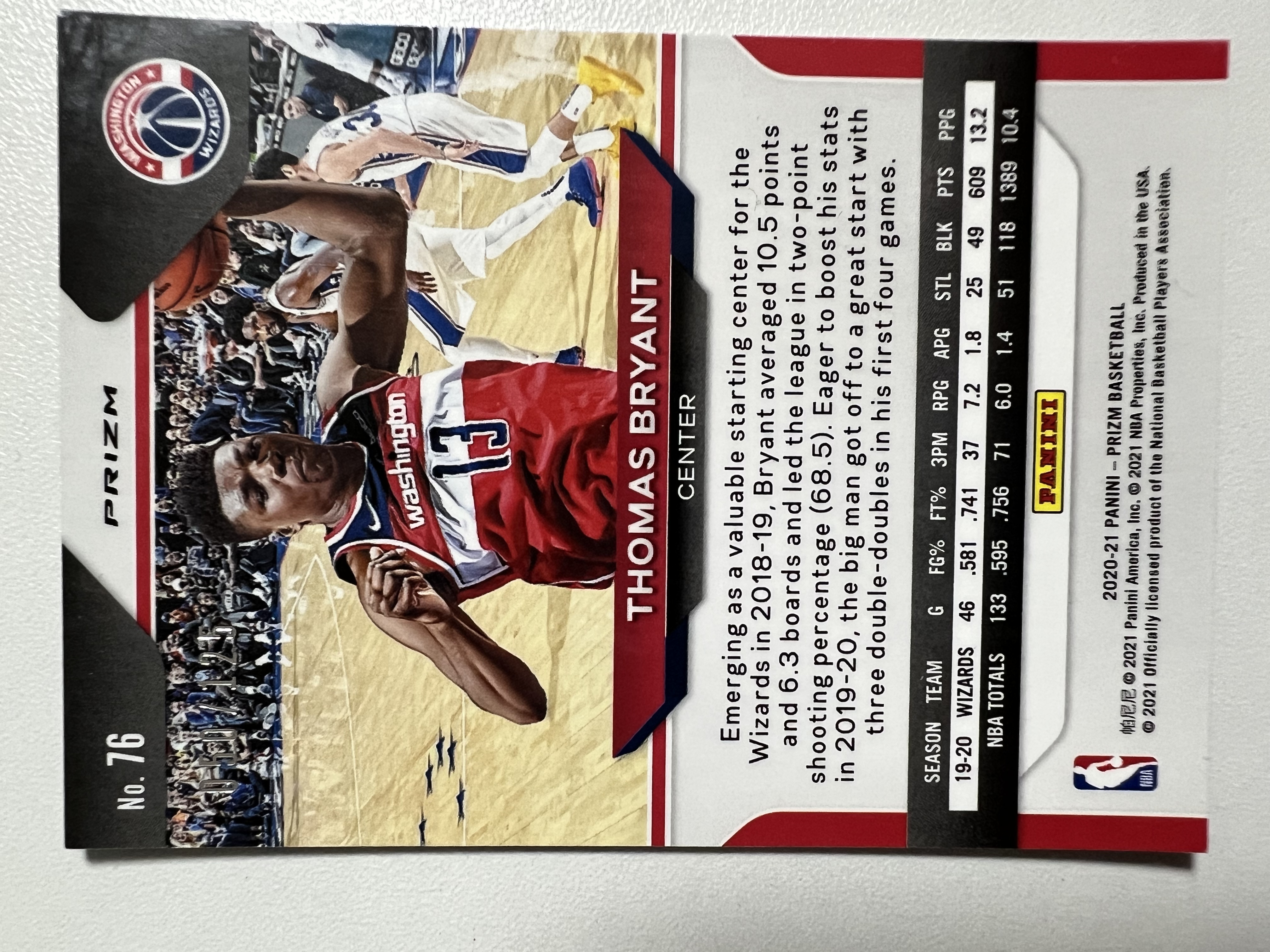 2020-21 Panini Prizm Thomas Bryant #76 托马斯·布莱恩特 华盛顿奇才 折射 蓝碎冰 收藏凑套 卡品如图