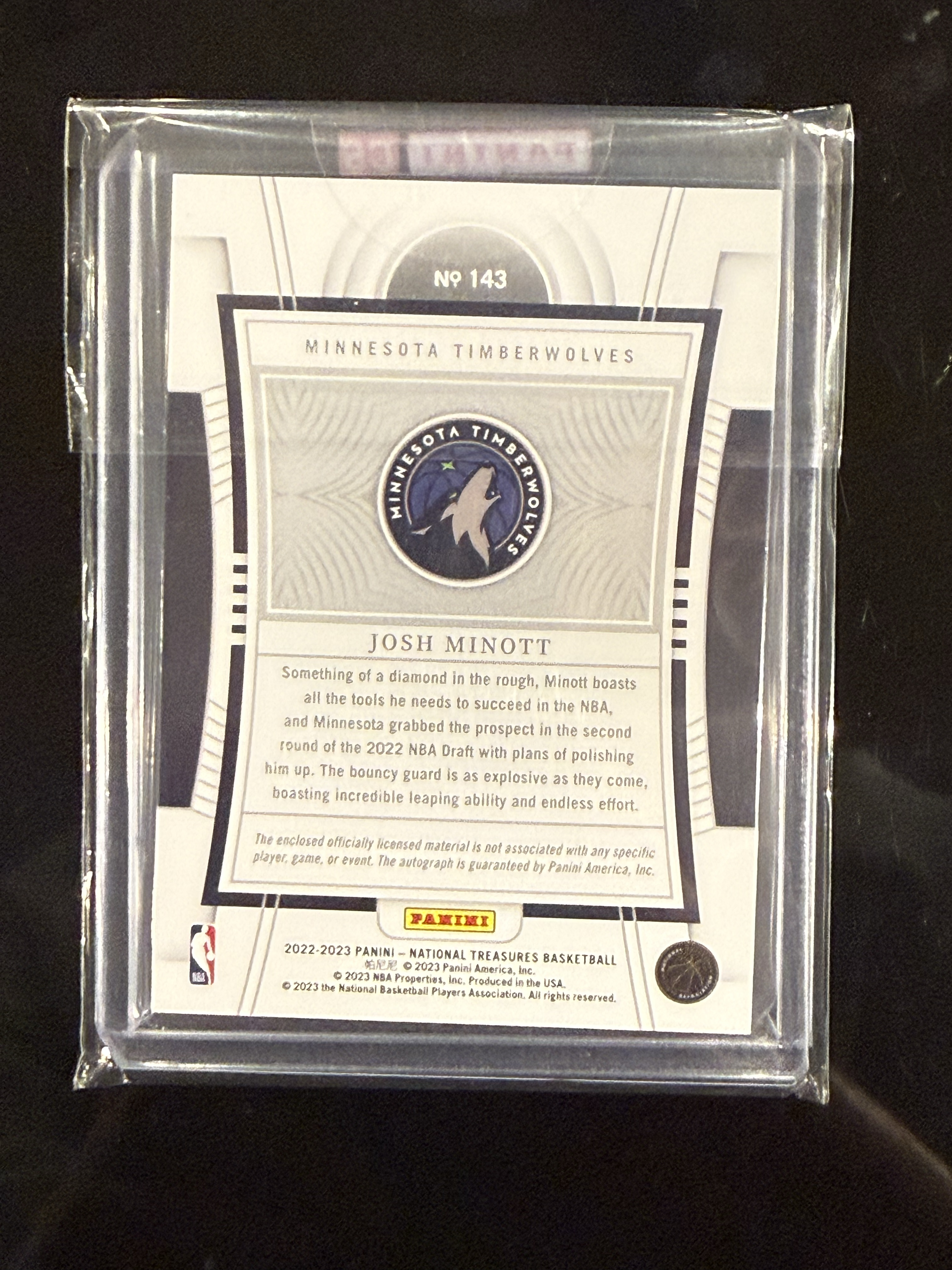 2022-23 Panini National Treasures Josh Minott RC 约什 米诺特 米努特 迈诺特 新秀RC 国宝 75编 签字 Patch 球衣切割 原封夹