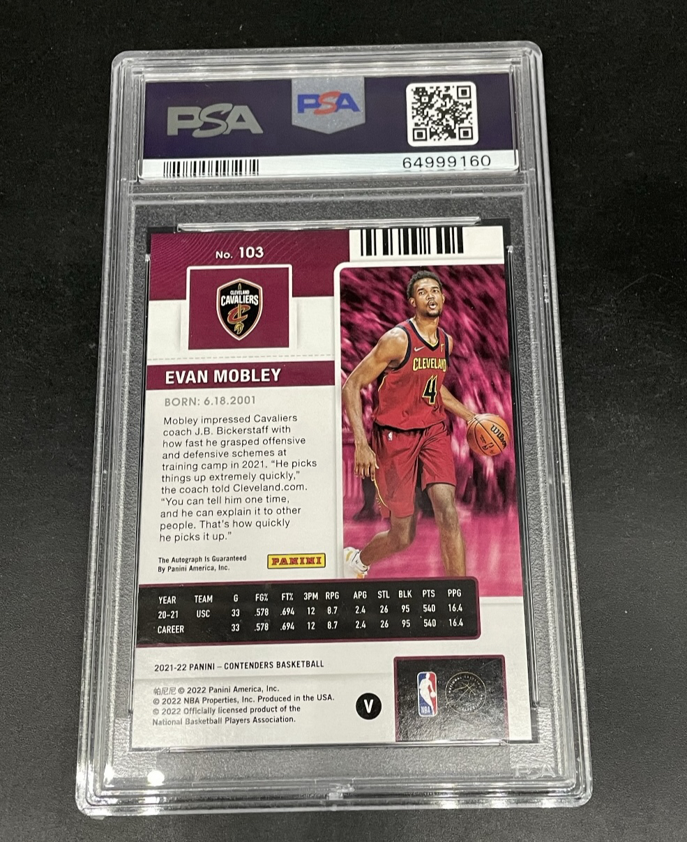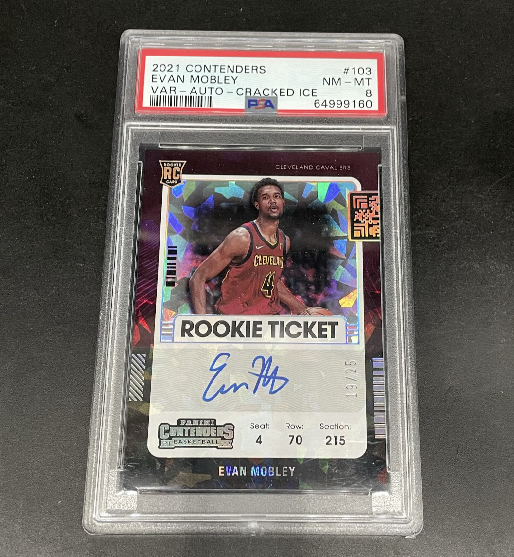 2021-22 Panini Contenders Evan Mobley RC 【白鸟代卖 雨花石 寄付特快】球票 骑士 埃文 莫布利 莫布里 新秀 /25编 碎冰折 签字 卡签 psa8分