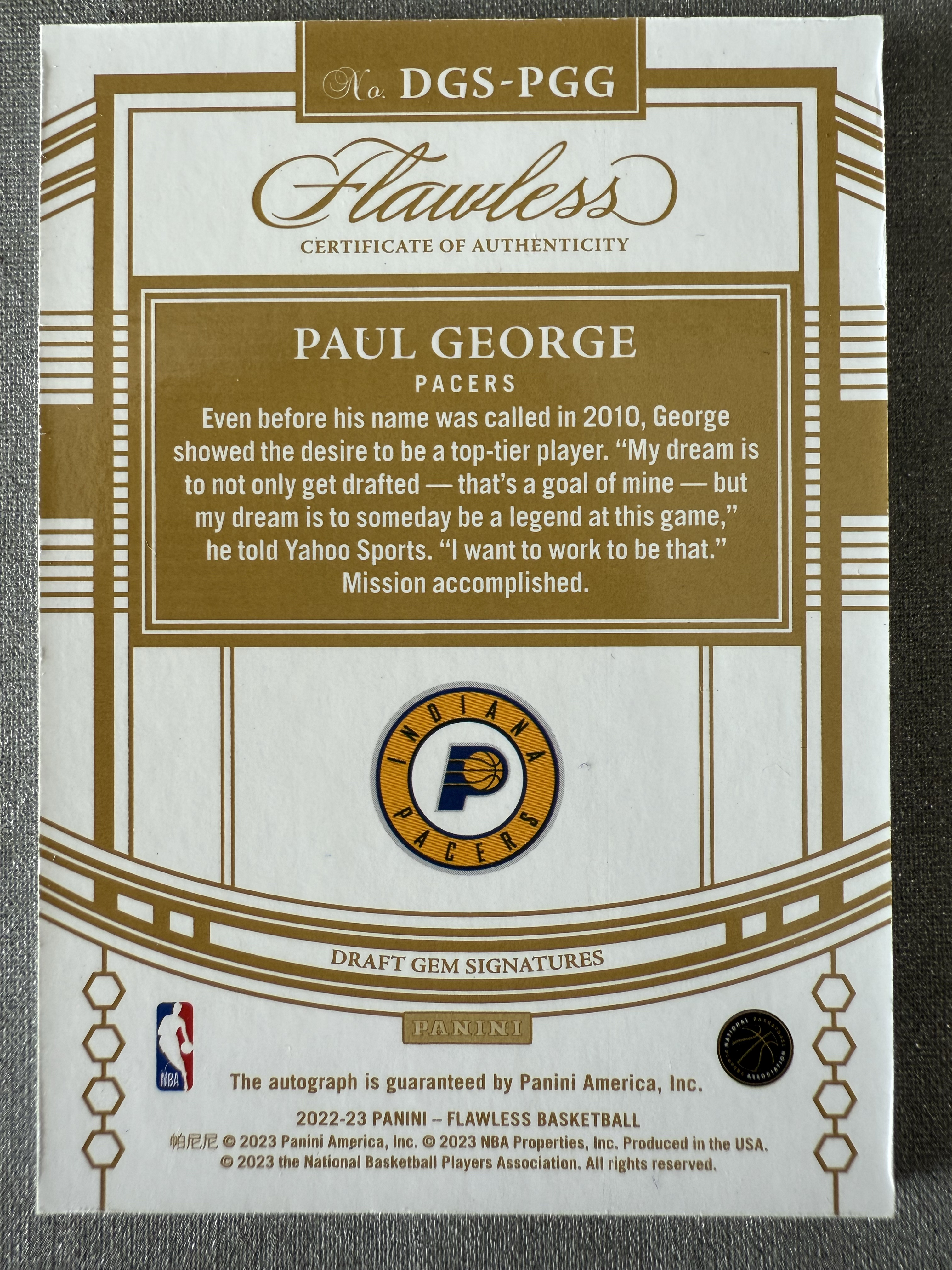 2022-23 Panini Flawless Paul George 保罗 乔治 步行者 25编 球员签字卡 卡签 凑套必备 值得收藏