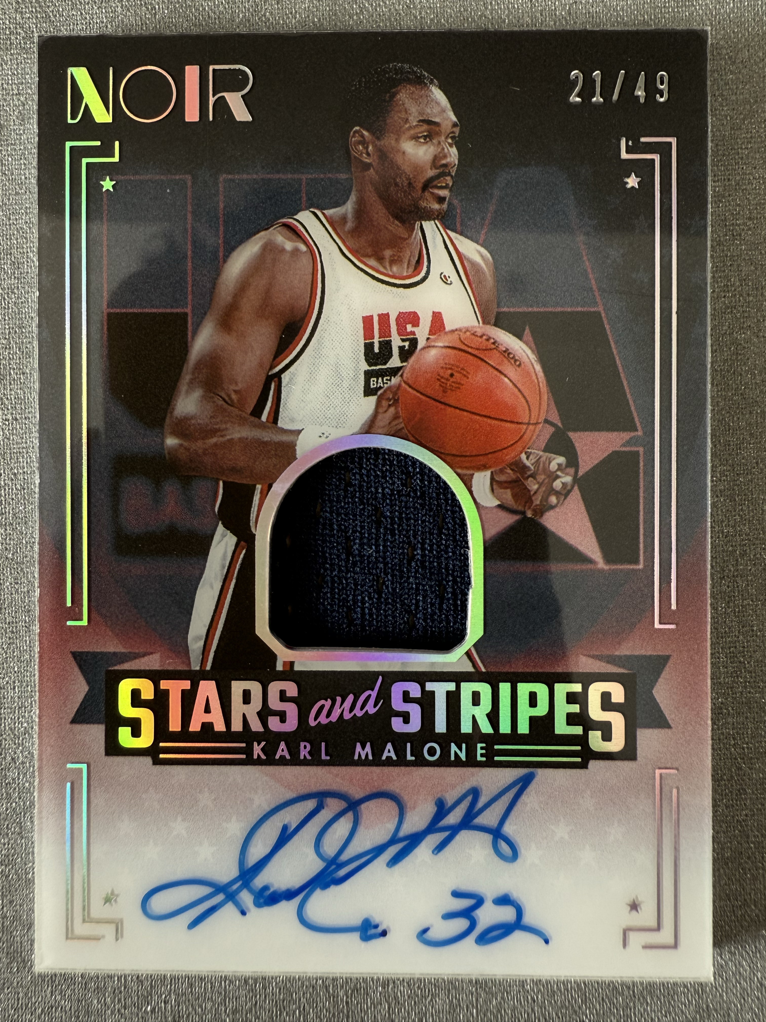 2023-24 Panini Noir Karl Malone 马龙 美国梦之队 49编 JA 小窗GU落场球衣物料 卡签 背号签 凑套必备 值得收藏
