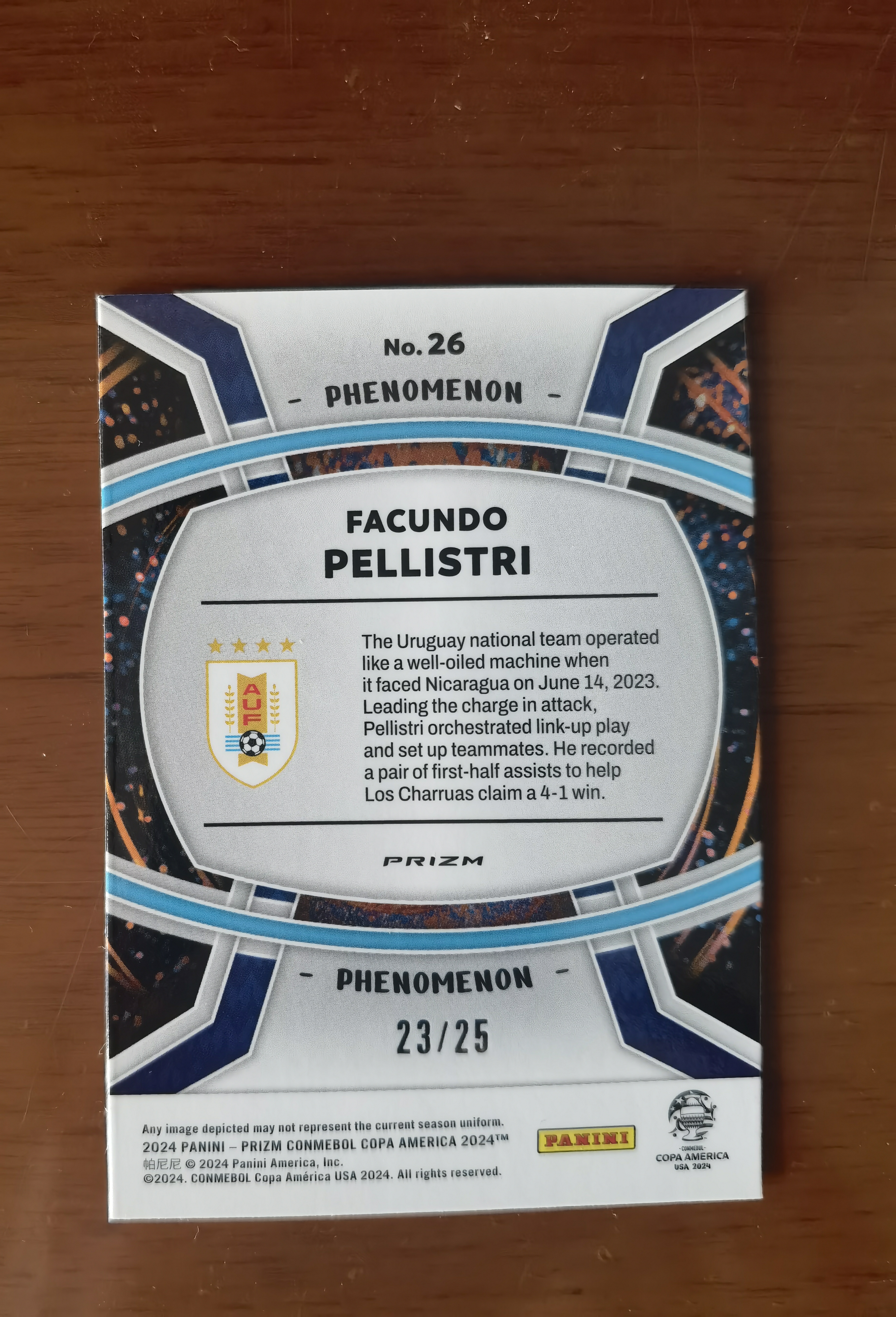 2024-25 Panini Prizm Facundo Pellistri 佩利斯特里 /25编 橙折 超低编 现象特卡 美洲杯 Pz 乌拉圭 未来可期 豪门猎物 收藏品 卡品如