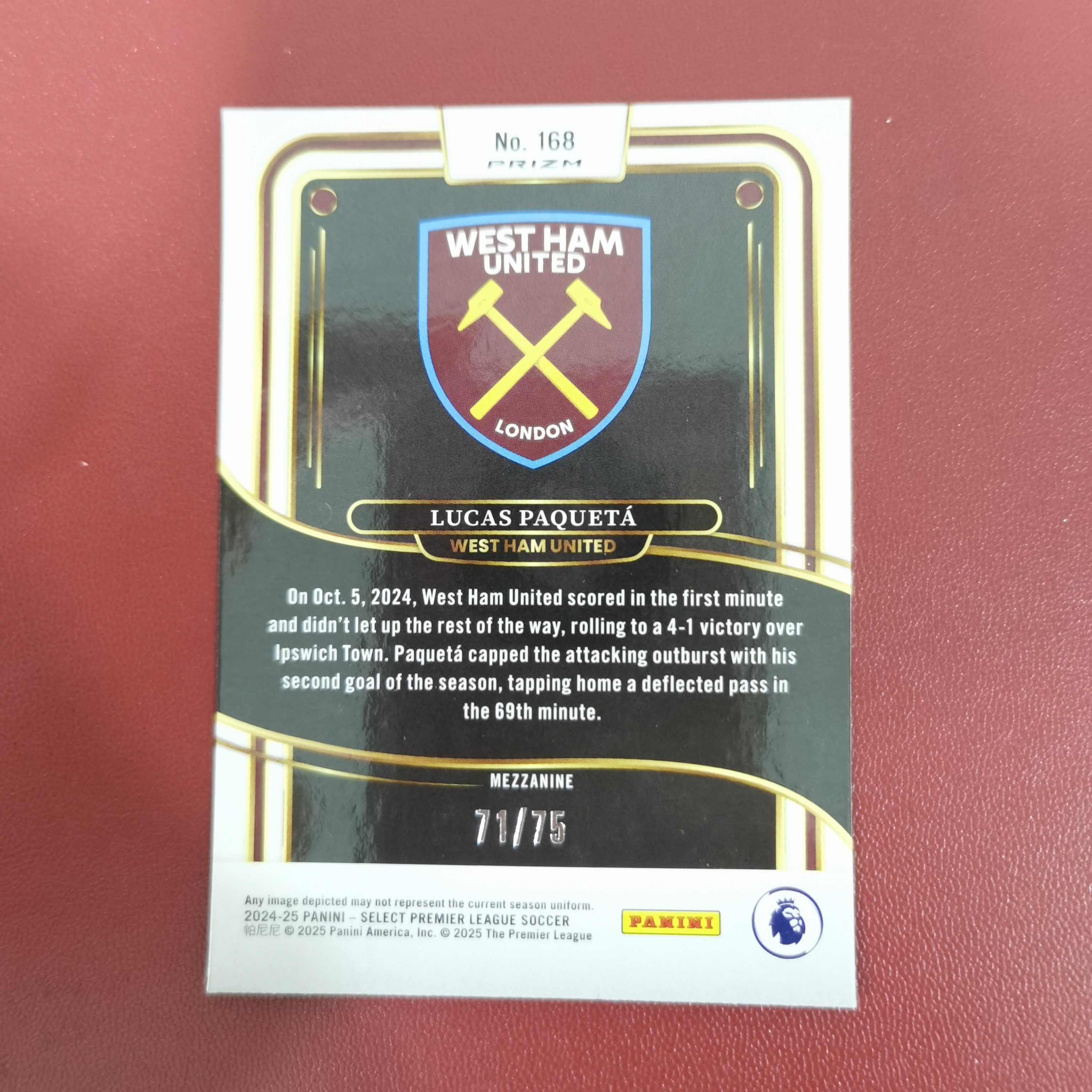2024-25 Panini Select Lucas Paquetá 英超select 西汉姆联 帕奎塔 75编 橙折 卡品如图 专收必备 (Z)