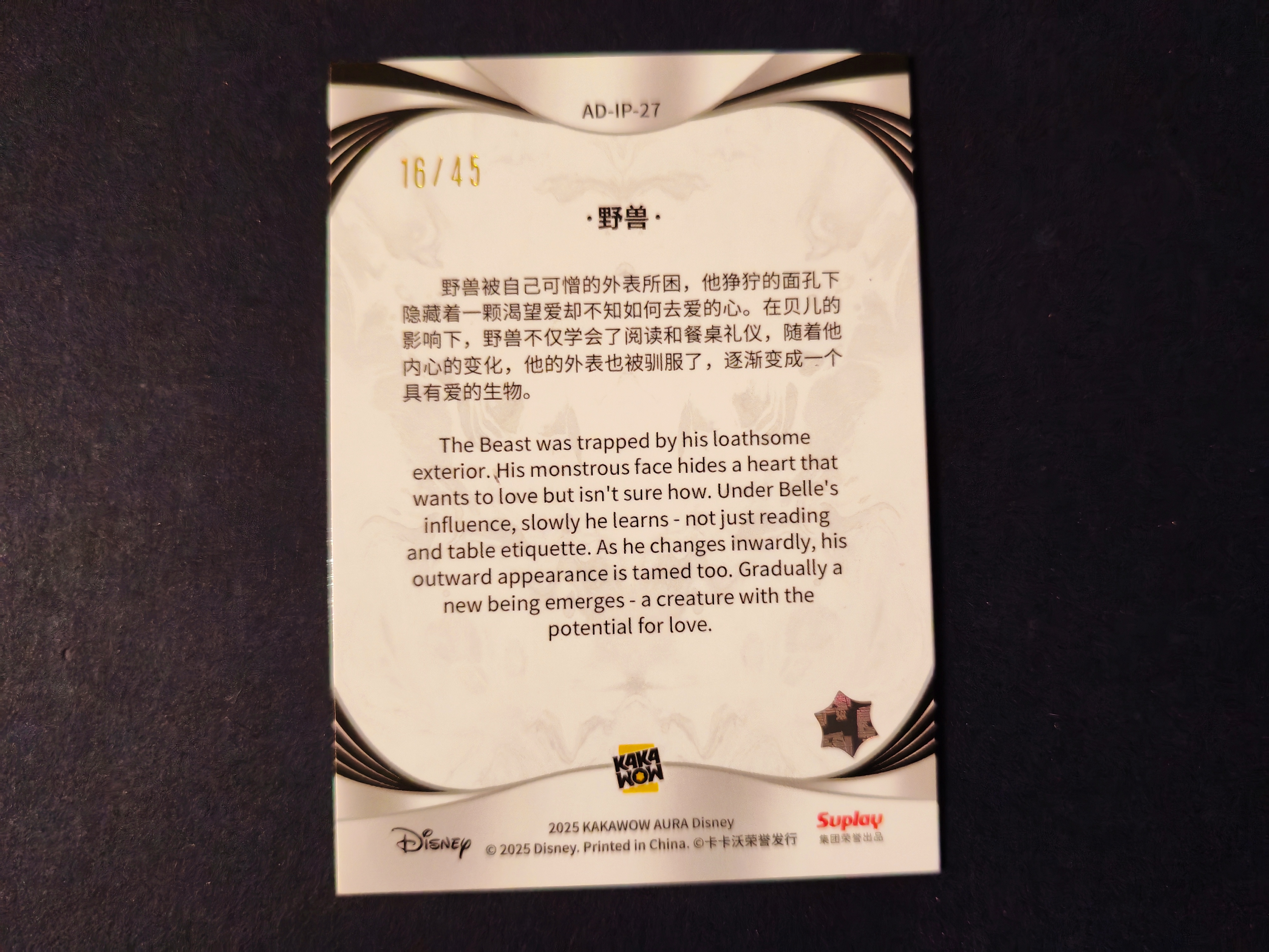 2025 kakawow Disney kakawow AURA 系列收藏卡 野兽 印象甜粉 箱配 粉折 限/45编 卡品如图所示 默认官瑕!