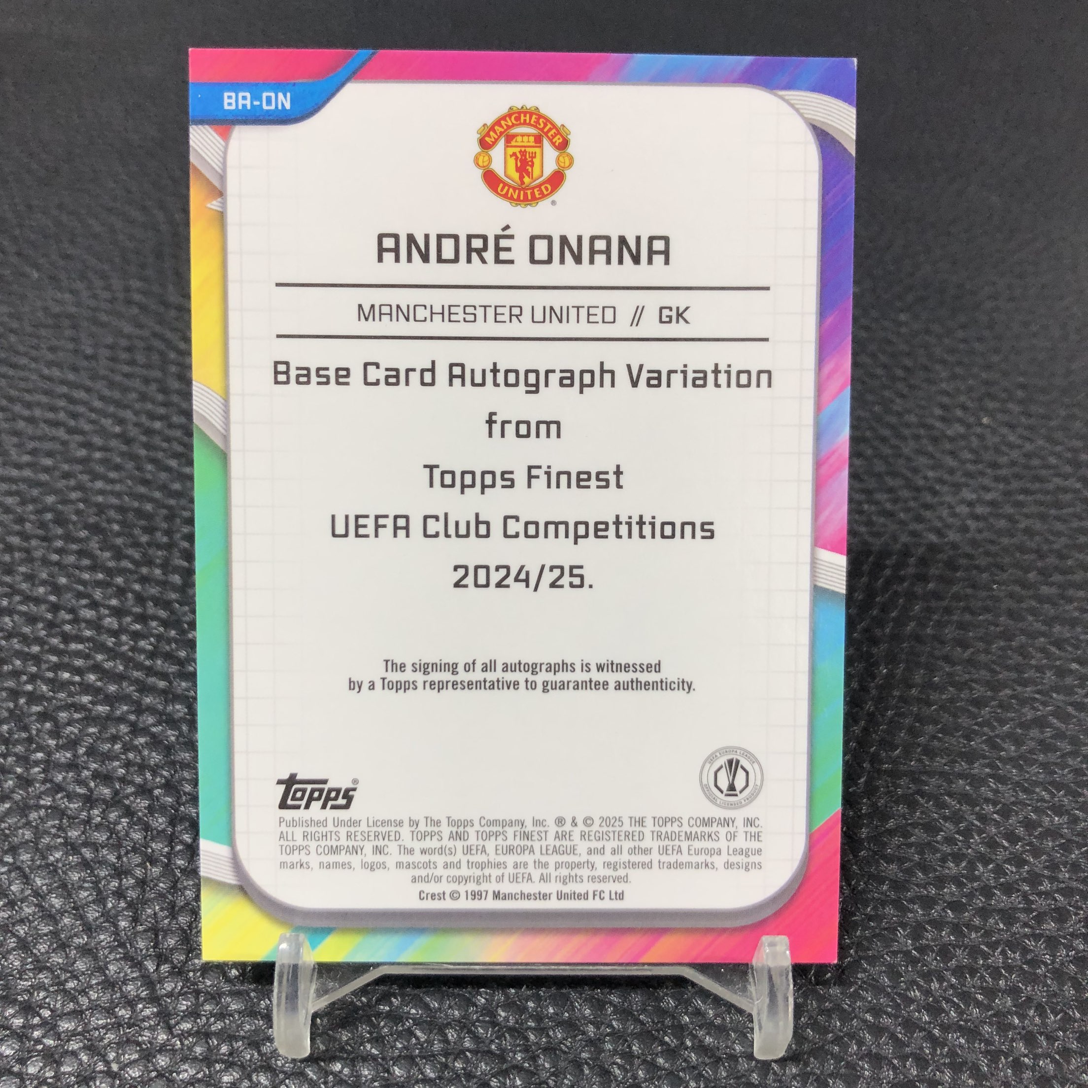 【浩行拍卖 截标预付82%】2025 topps Finest andre onana 欧冠 曼联 安德烈 奥纳纳 签字 紫折 折射 264/299编 专收必备 瑕疵看图「单钩」1106D09驡