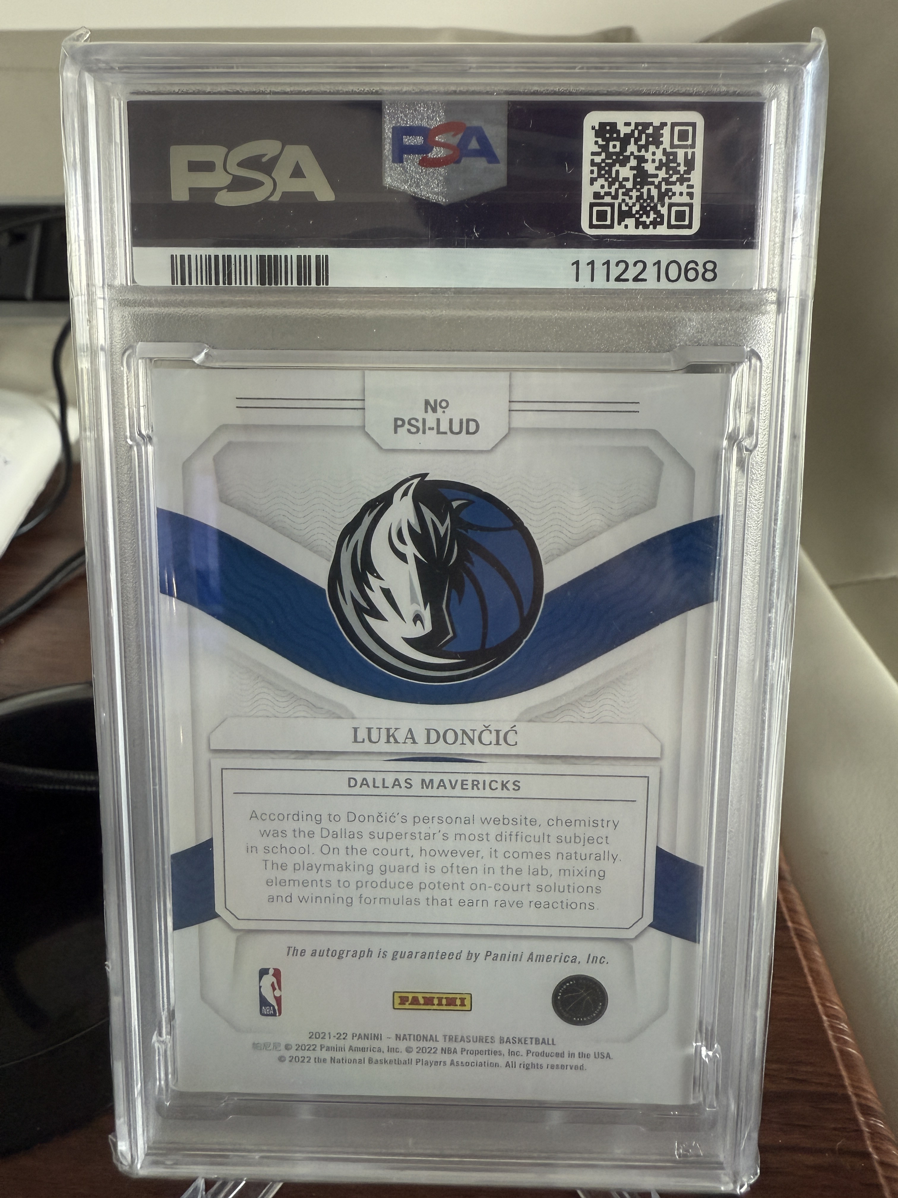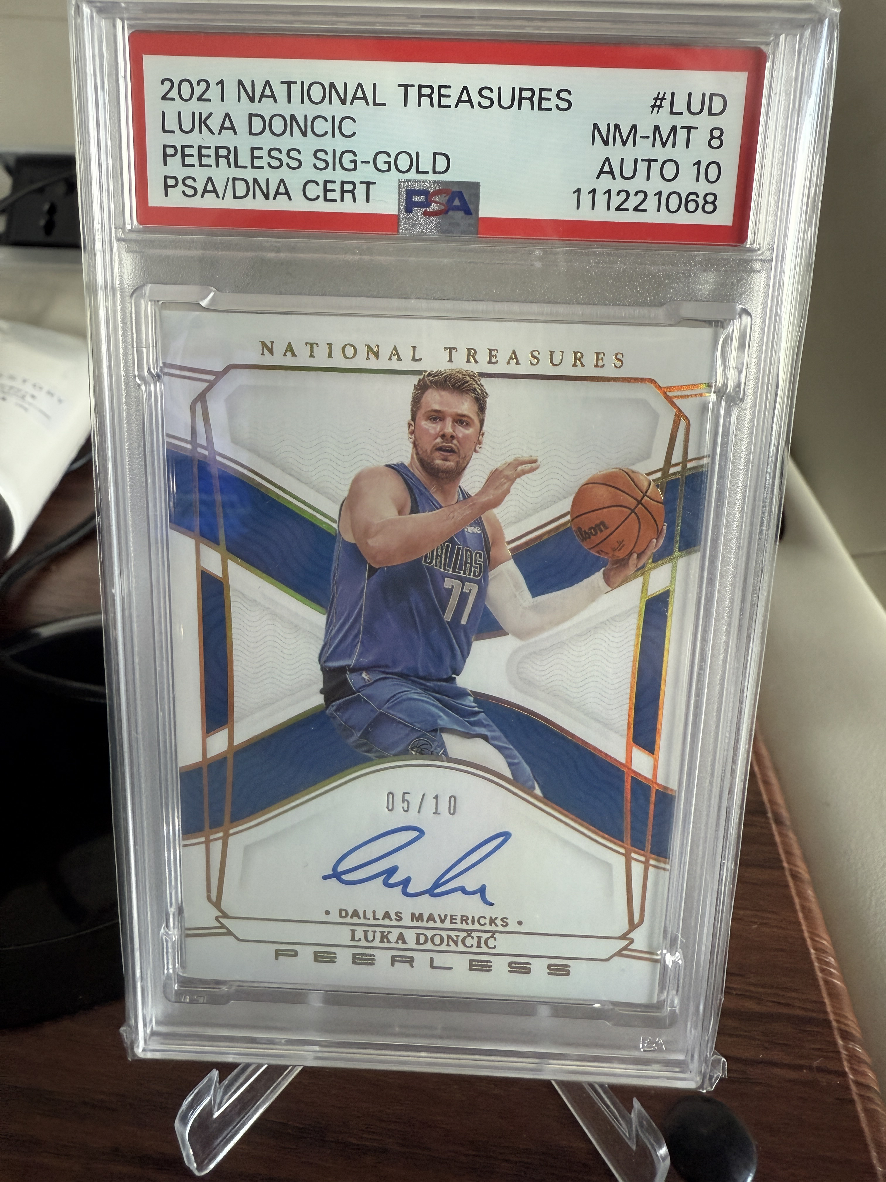 2021-22 Panini National Treasures Luka Doncic 国宝 卢卡 东契奇 77 独行侠 卡签 签字 10编 Peerless 无双签 psa8+10分 评级
