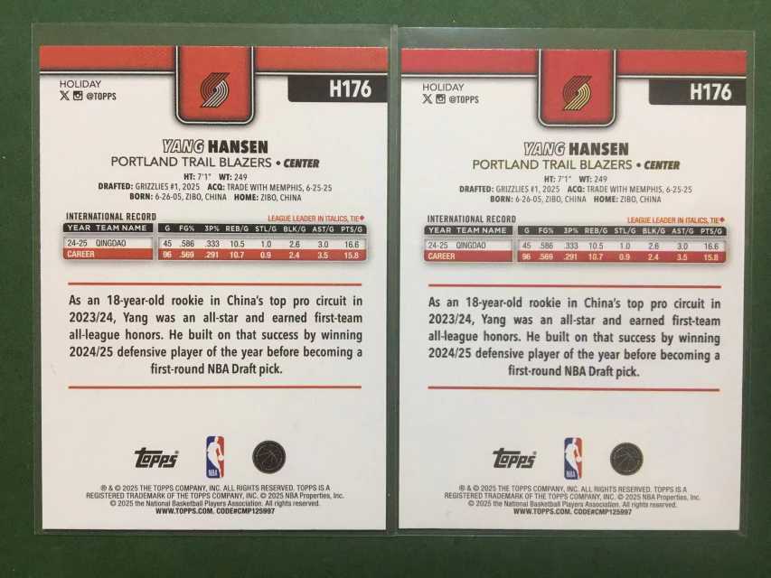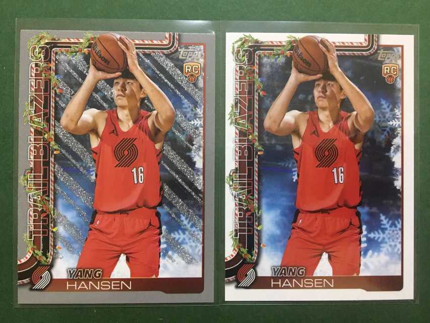 2025 Topps Holiday 杨瀚森 RC 假日版 新秀 开拓者 YANG HANSEN 雪花折 银闪折 折射 圣诞版base 2张lot 国人之光 弗拉格同届 利拉德队友 卡品如图#纪