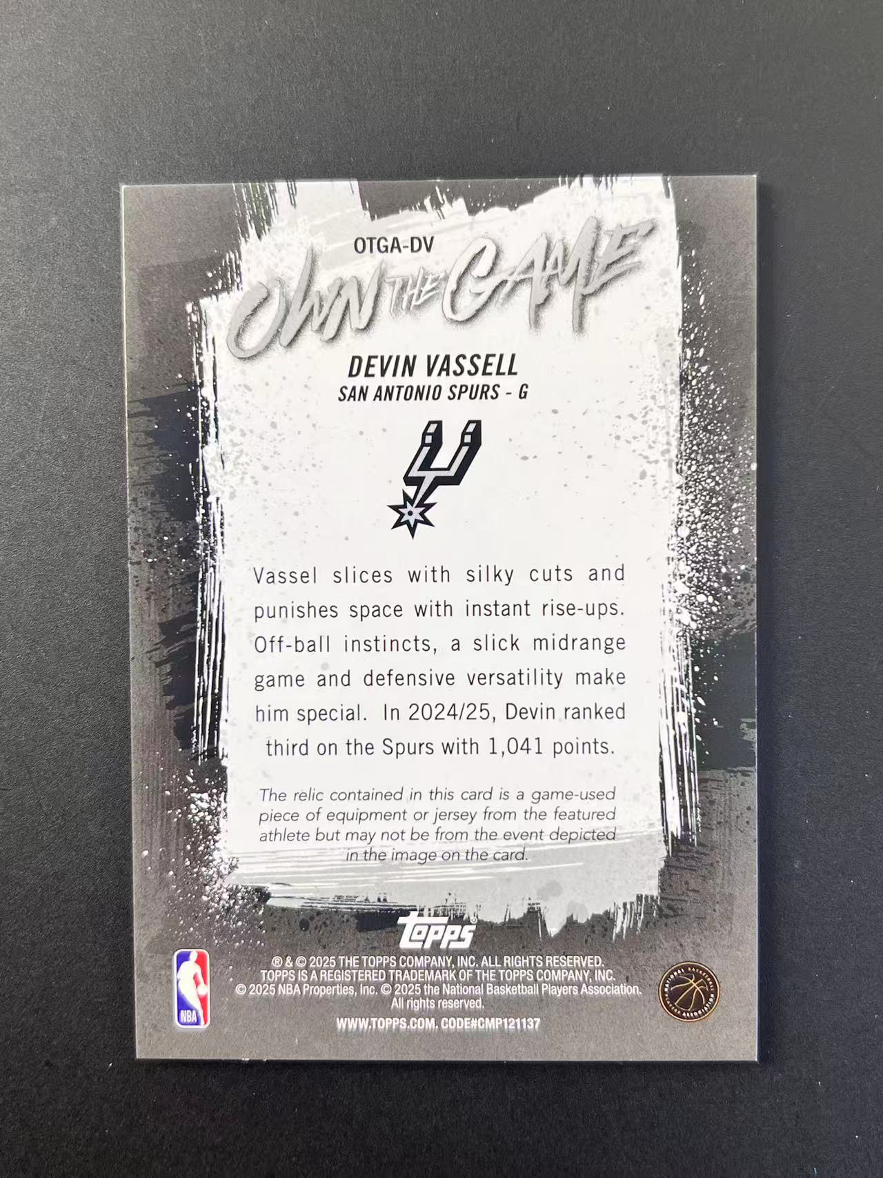 2025 Topps Flagship Devin Vassell 【卡老鼠代卖】马刺 德文 瓦塞尔 GU落场 球衣 物料 小窗 ryan 寄付