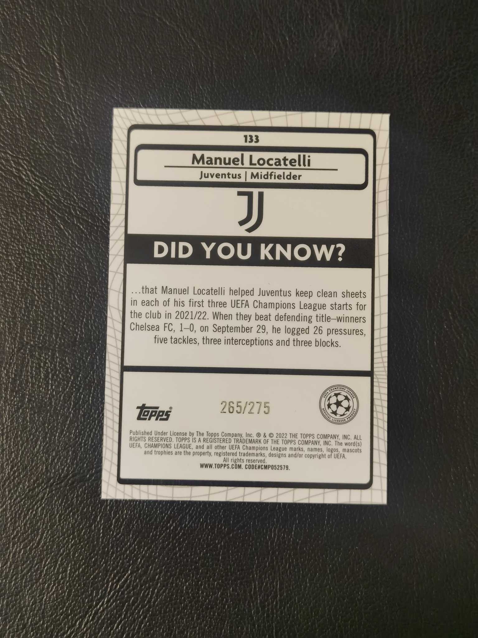 2022 Topps Merlin chrome Manuel Locatelli 洛卡特利 275编 粉mojo折 带编折射【ycy 一丁】