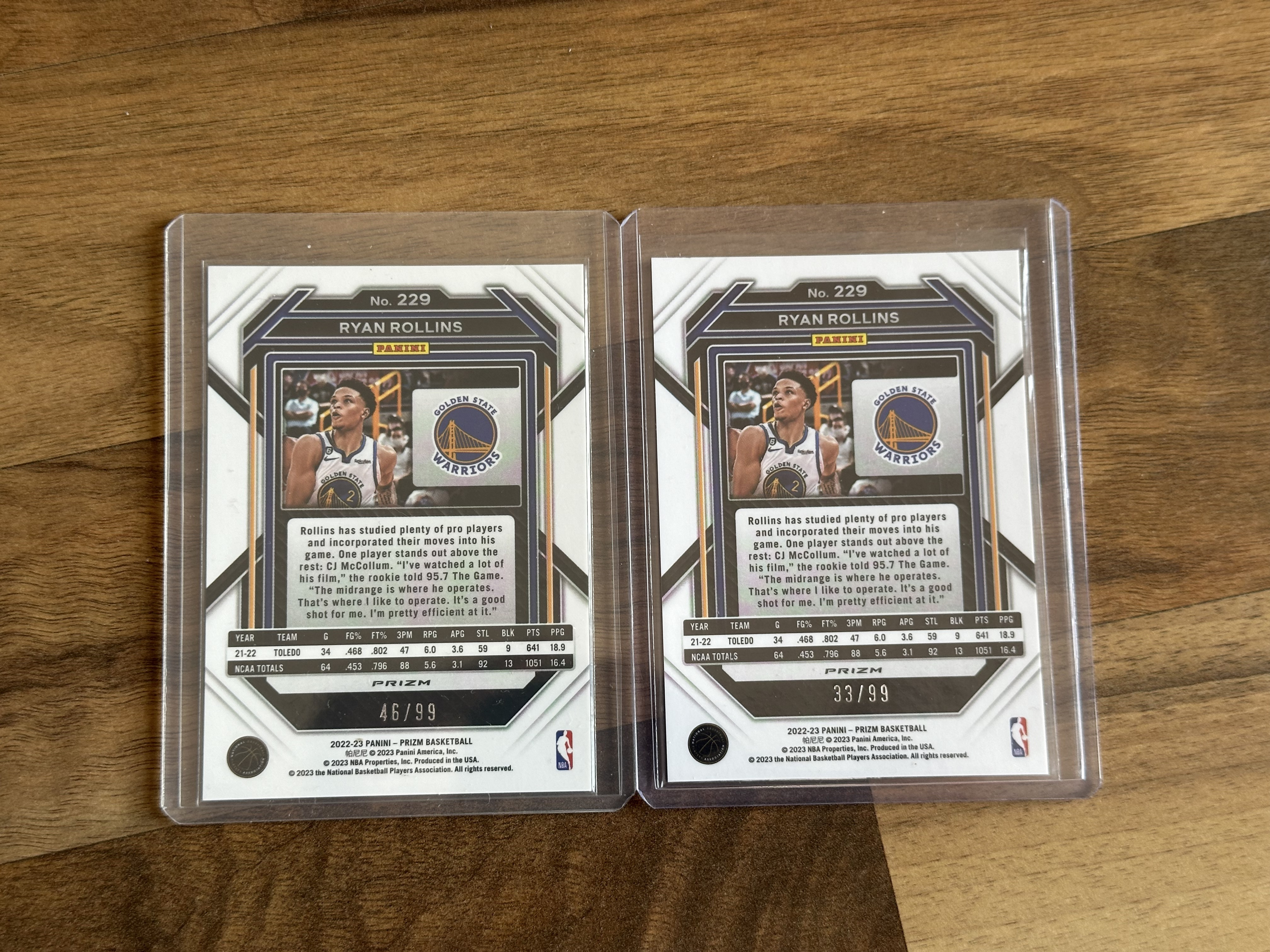 2022-23 Panini Prizm Ryan Rollins RC 新秀 罗林斯 紫折 99编 打包两张 lot