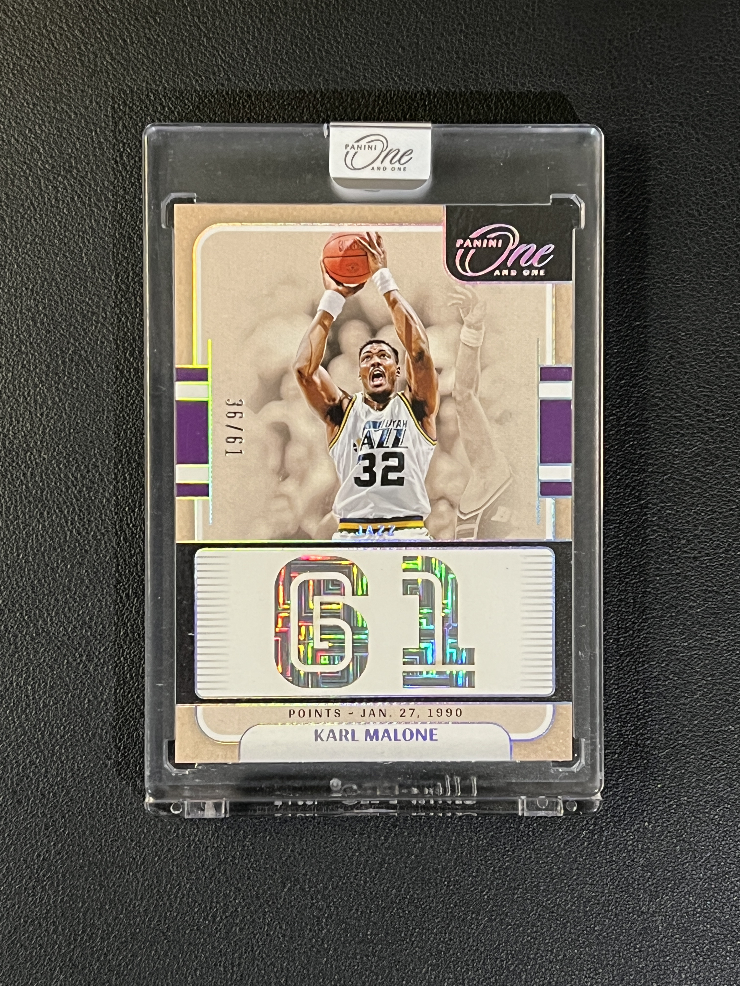 2024-25 Panini One and One Karl Malone 卡尔 马龙 邮差 爵士 61编 闪版 数据 记录61分得分数据 原封砖(卡品如图)