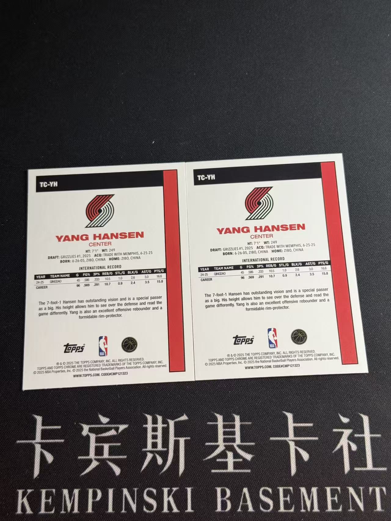 2025-26 Topps NBA Hansen Yang RC 【卡宾】杨瀚森 开拓者 中国骄傲 首版正式NBA球星卡 银MOJO折 硬卡 对标PZ 2张LOT 专收凑套必备 不保卡品 白神