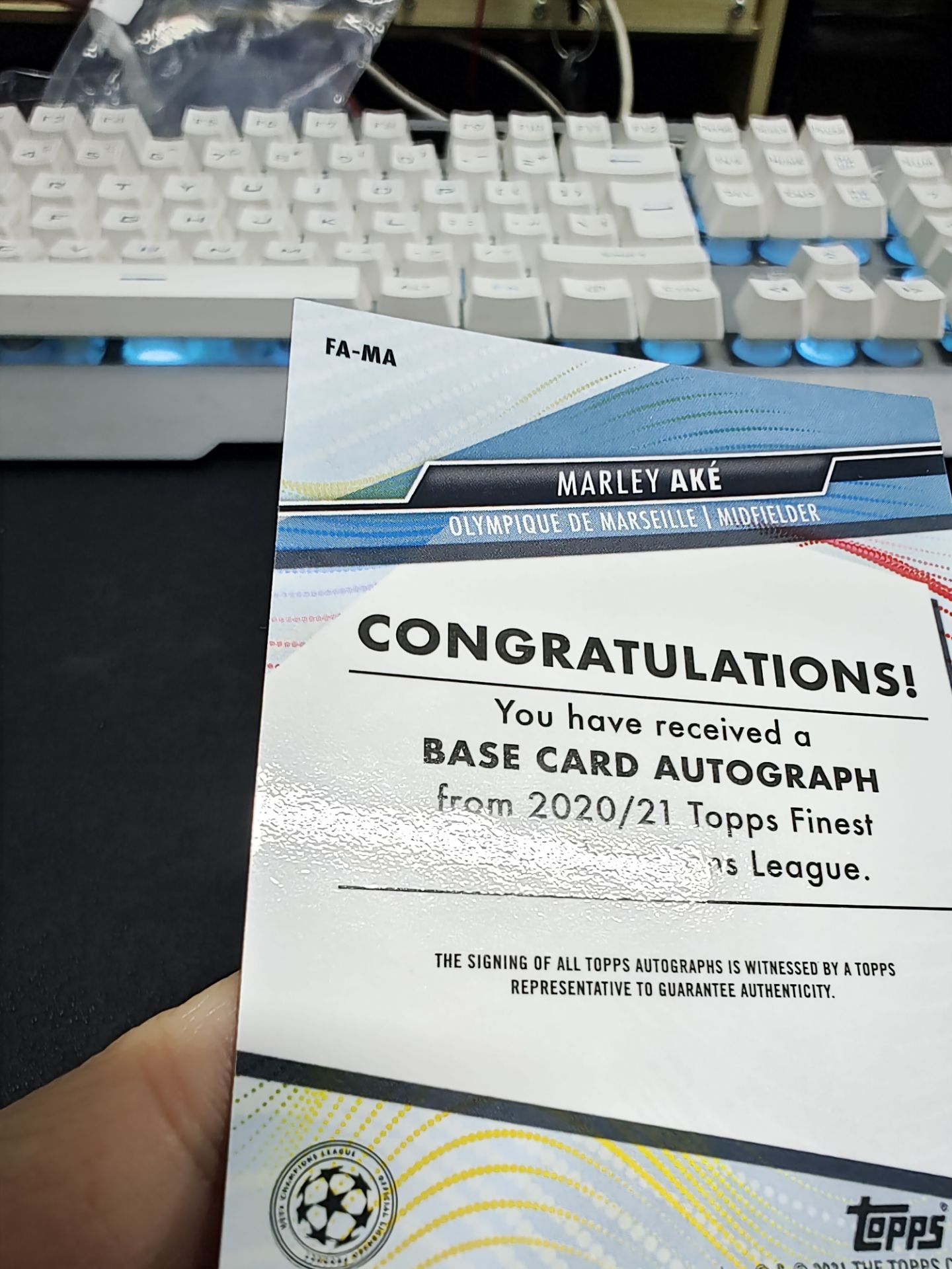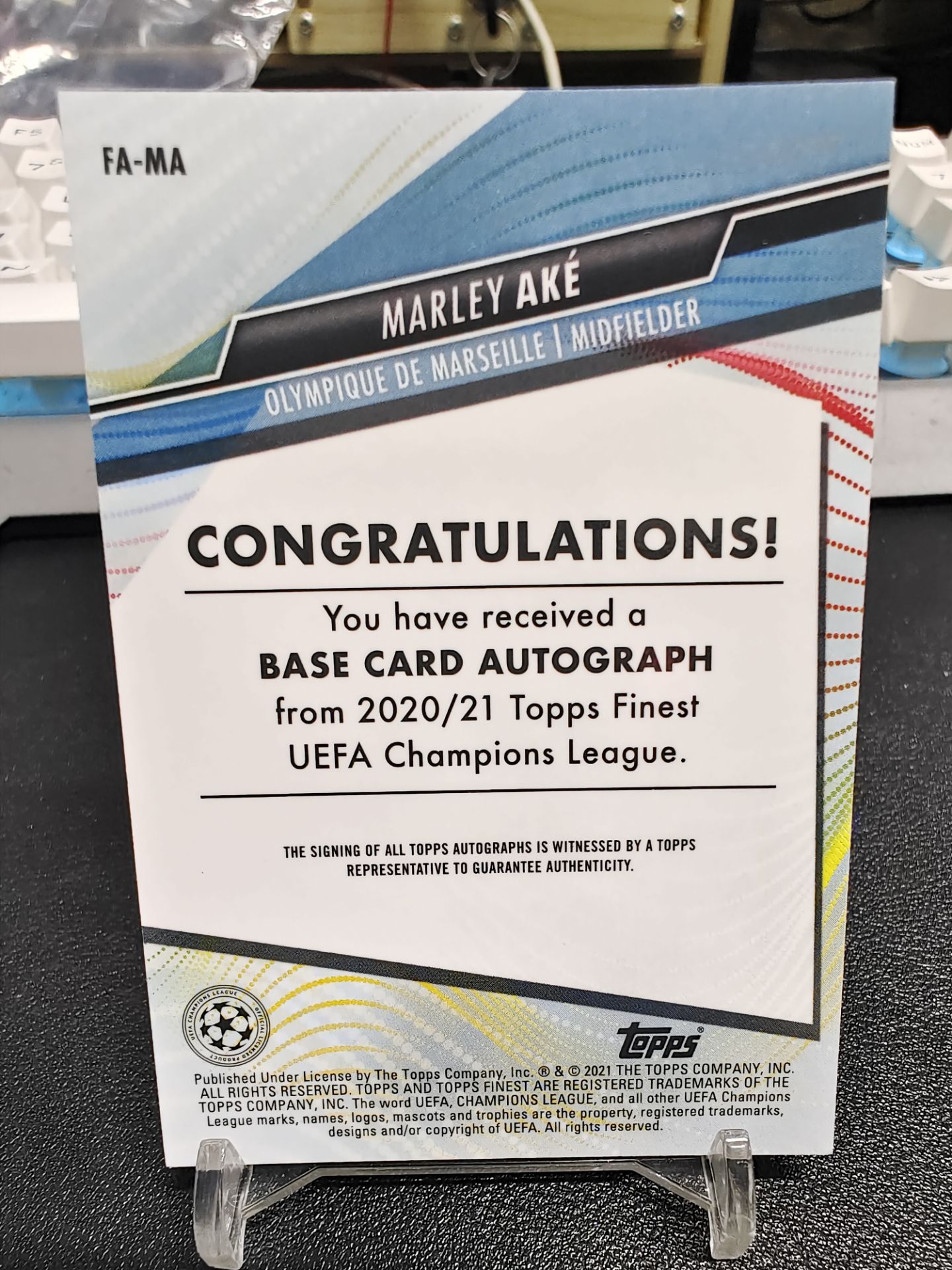 【浩行拍卖 截标预付82%】2021 topps finest marley ake 欧冠 马赛 马利 阿克 rc 新秀 银折 折射 签字 专收必备 瑕疵看图「稳妥236重上」1106恁