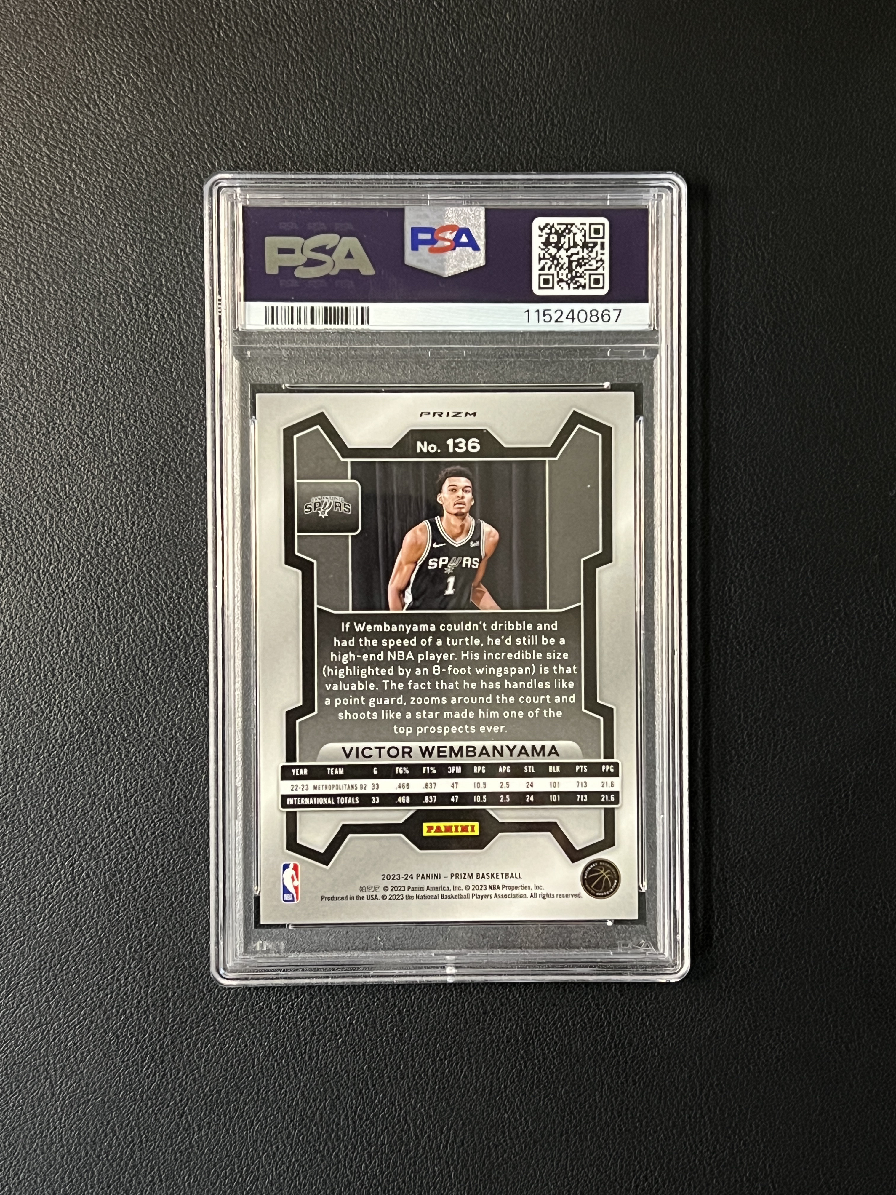 2023-24 Panini Prizm Victor Wembanyama RC 新秀 马刺 维克托 文班亚马 正银折 评级卡 PSA 10分 高僧 顶级防守 新赛季大爆发(卡品如图)十一