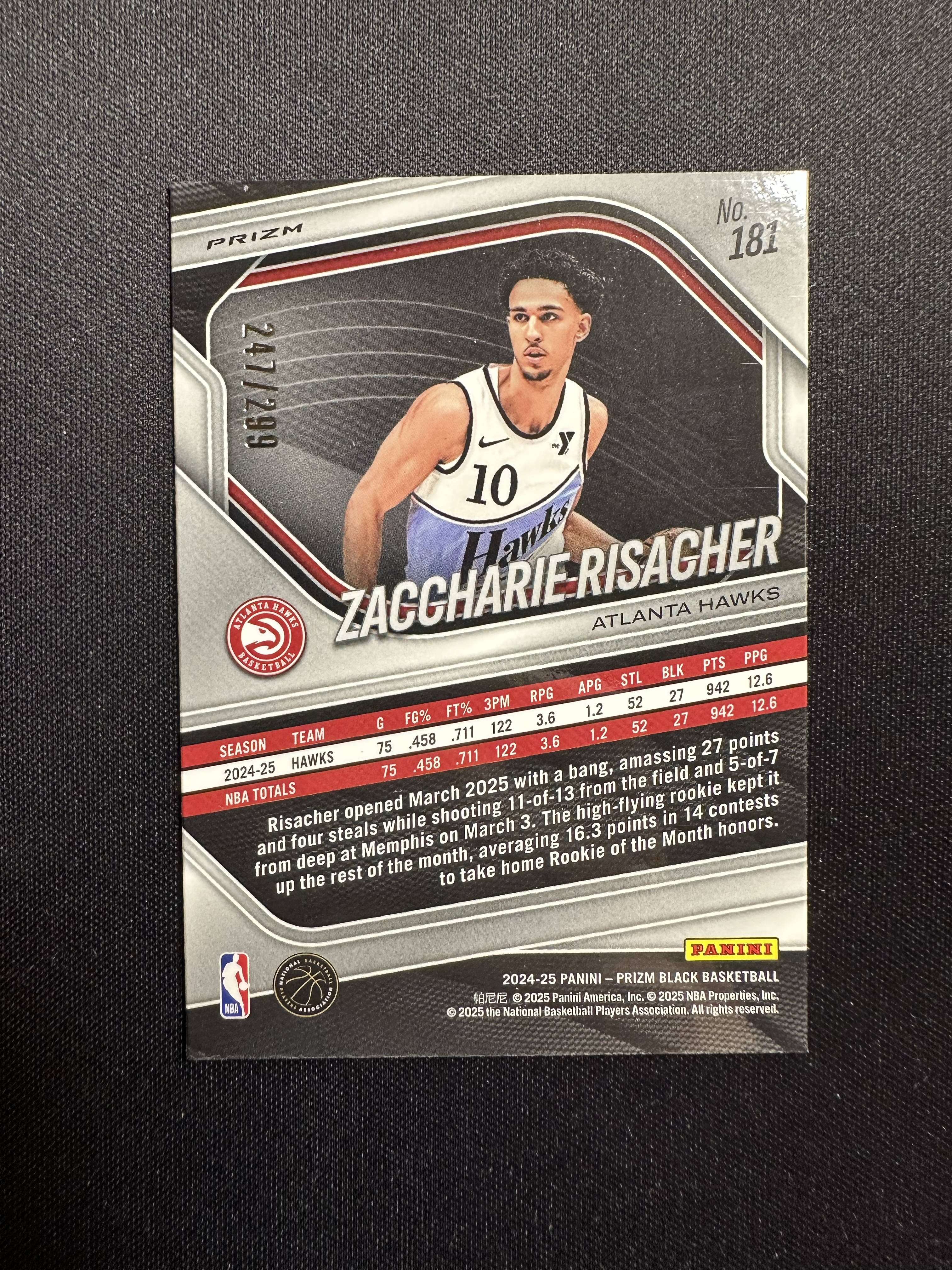 2024-25 Panini Prizm black Zaccharie Risacher RC 新秀 老鹰 里萨谢 299编 红折 折射 卡品如图【四小只】